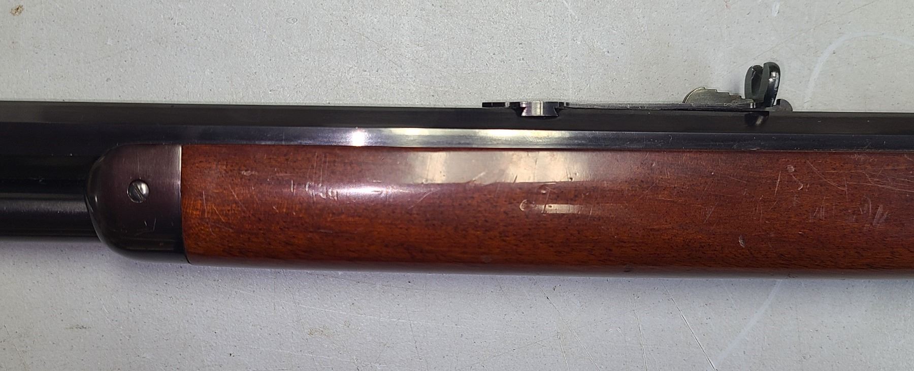 The barrel and magazine tube retain all of their original blue finish, while the frame