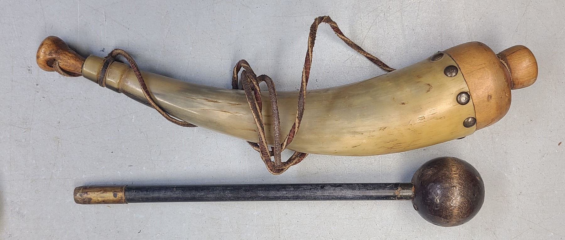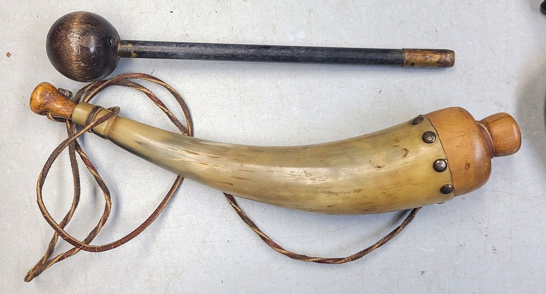 Lot 132 Real Horn Black Powder Flask + Wood Tamper.