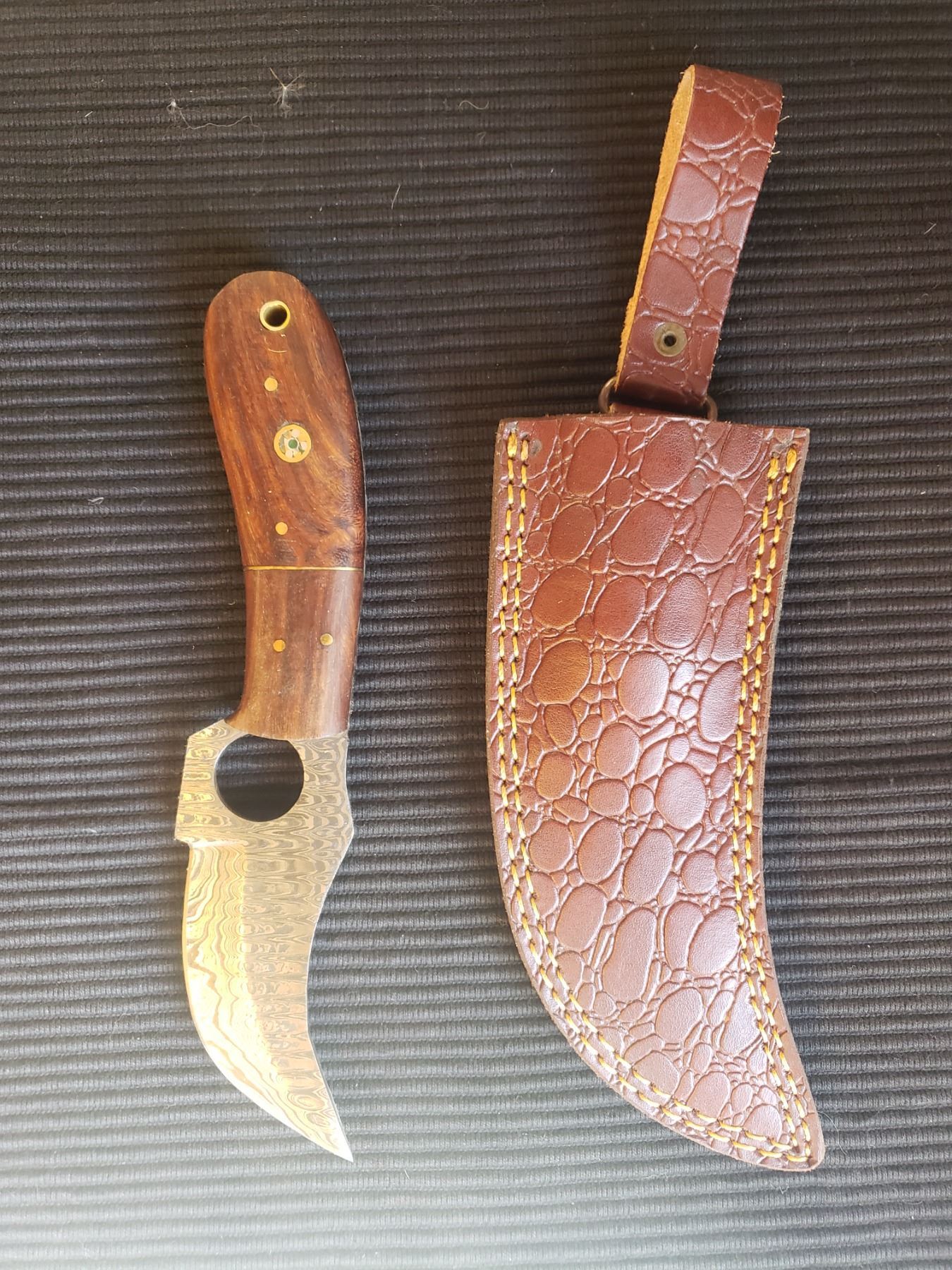 Lot 261 Hand Forged Damascus Steel Knife with Leather Sheath