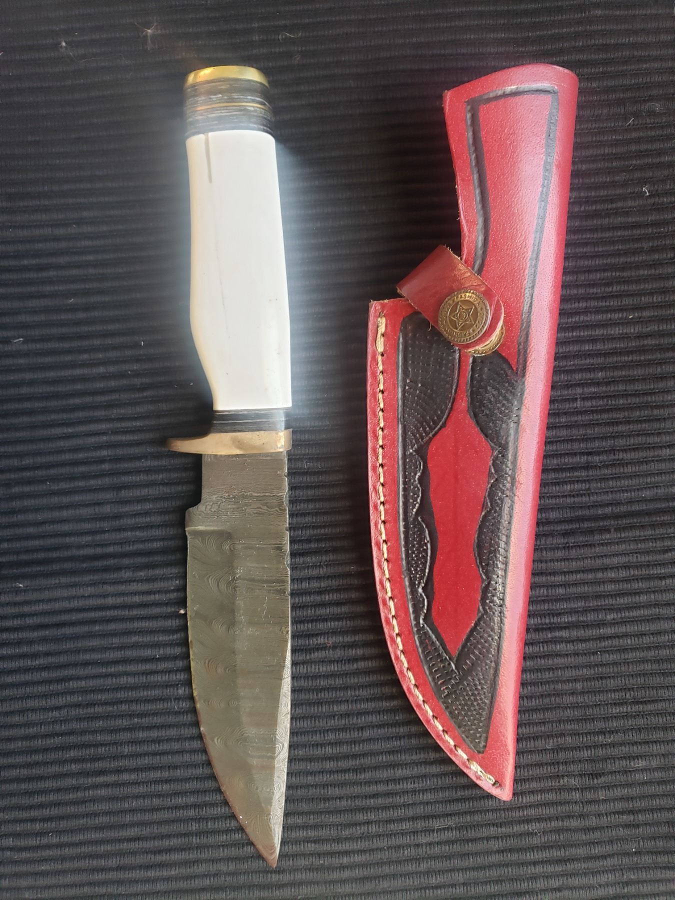 Lot 255 Hand Forged Damascus Steel Knife with Leather Sheath