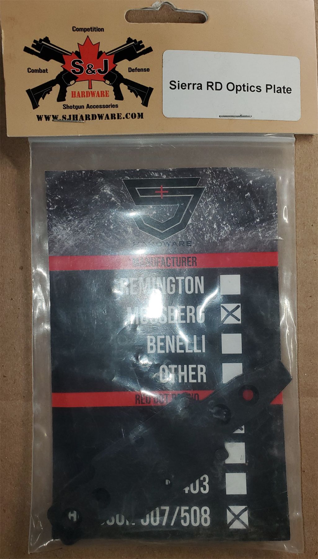 S&J Hardware presents their new Sierra RD Optics Plate, designed to mount onto your Mossberg shotgun with Sierra stock and accessorized with your Trijicon RMR or Holosun 507/508 red dot. Constructed from 6061 T6 Aluminum, and finished off with Milspec Type 3 Class II Anodizing. Includes everything you need to mount it onto your gun.Â