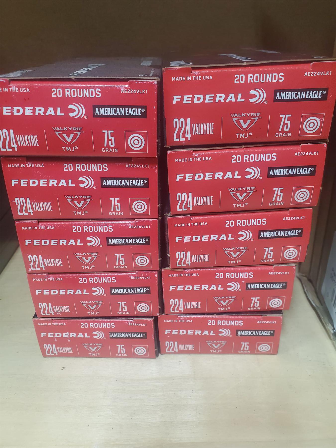 Lot 96 10 Boxes of Federal American Eagle 224 Valkyrie 75 Grain TMJ