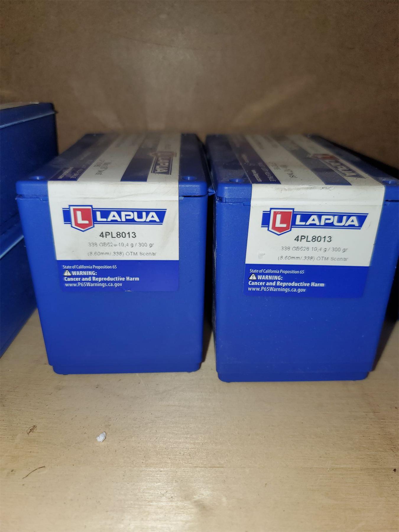 Lot 116 2 Boxes of Lapua 8.60mm/.338 OTM scenar 300gr Bullets For Reloading (100 per box, projectiles only)