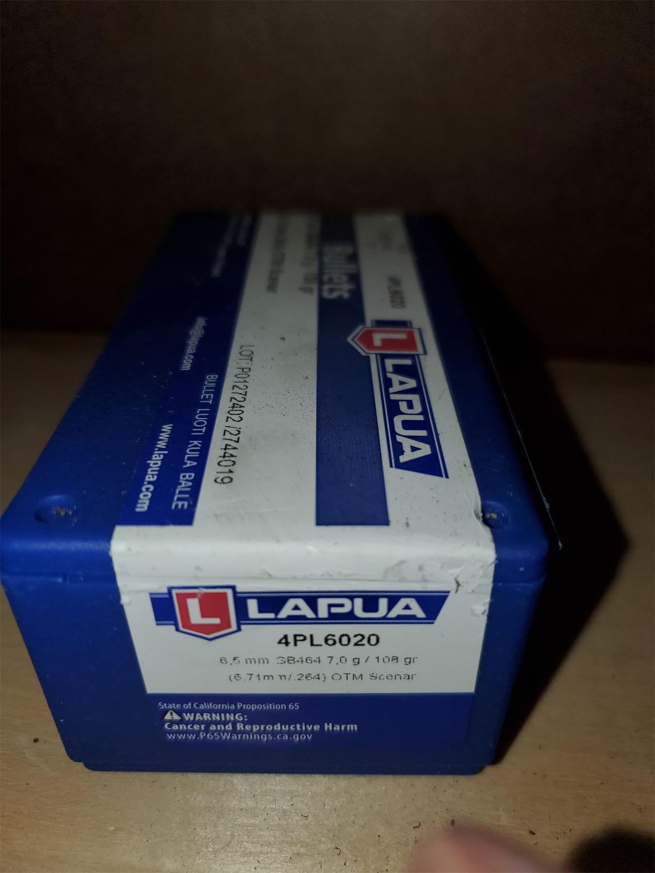 Lot 122 Lapua 6.5 CM (6.71mm/.264) OTM 108gr Bullets For Reloading (100 / box projo only)