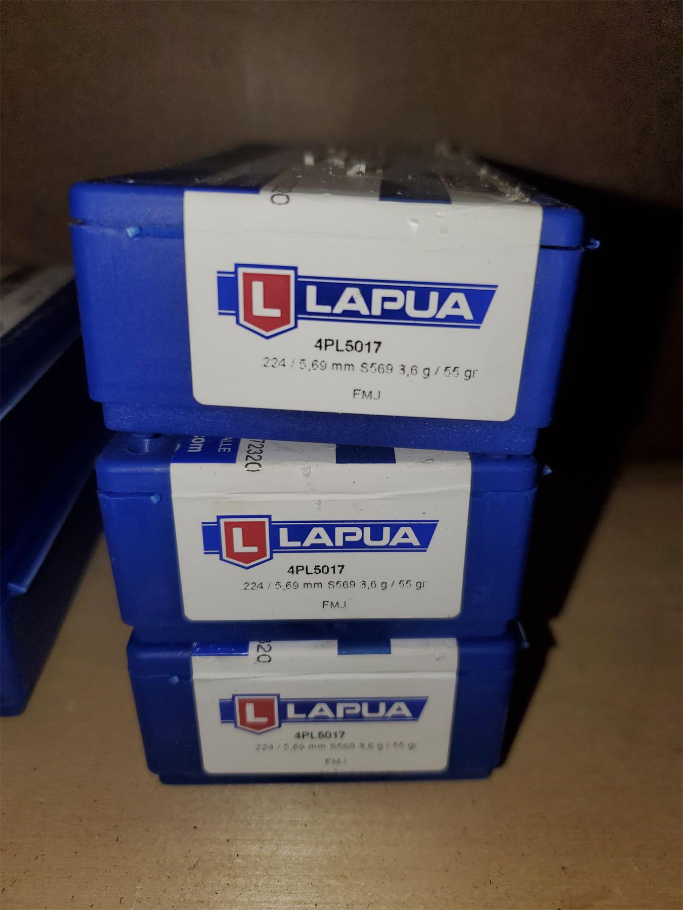 Lot 128 3 Boxes of Lapua .224/5.69mm FMJ 55gr Bullets For Reloading (100 / box projo only)