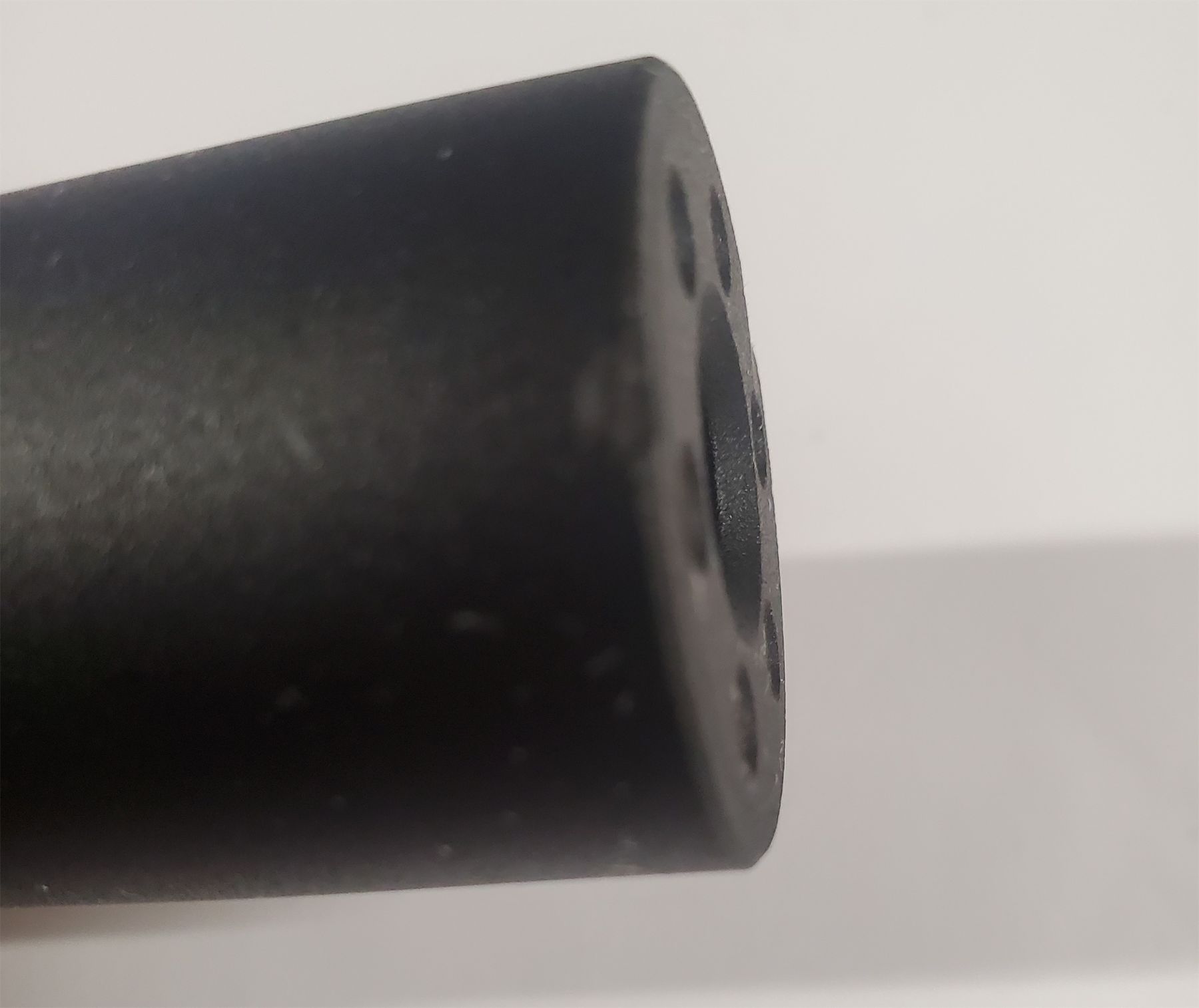 Suppressors aren't legal (for now...) but you can still get the look with this fake can. It's a weighty hunk of metal that looks like a silencer, without the silencing effect. The bullet simply travels through a 0.46" diameter bore. This solid one-piece design is also very easy to clean. Very minor blemish.