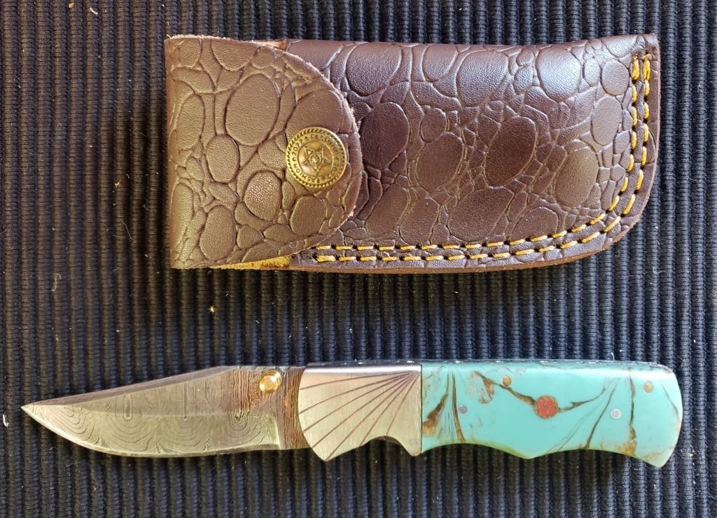 Lot 266 Hand Forged Damscus Steel Folding Knife