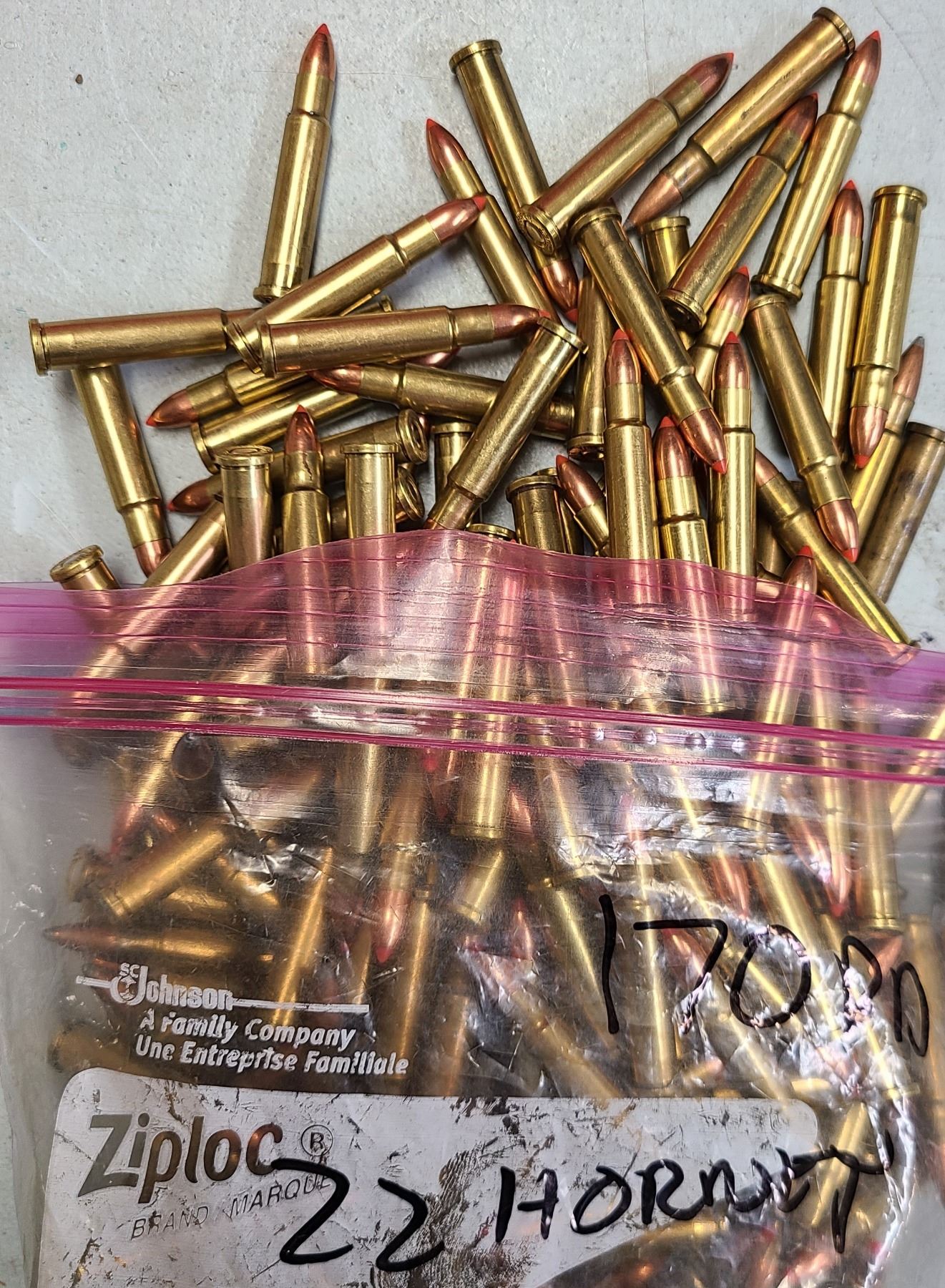 22 K Hornet - 170 Loose Rounds Mixed Bullet Types - May be Mixed Factory & Reloads..