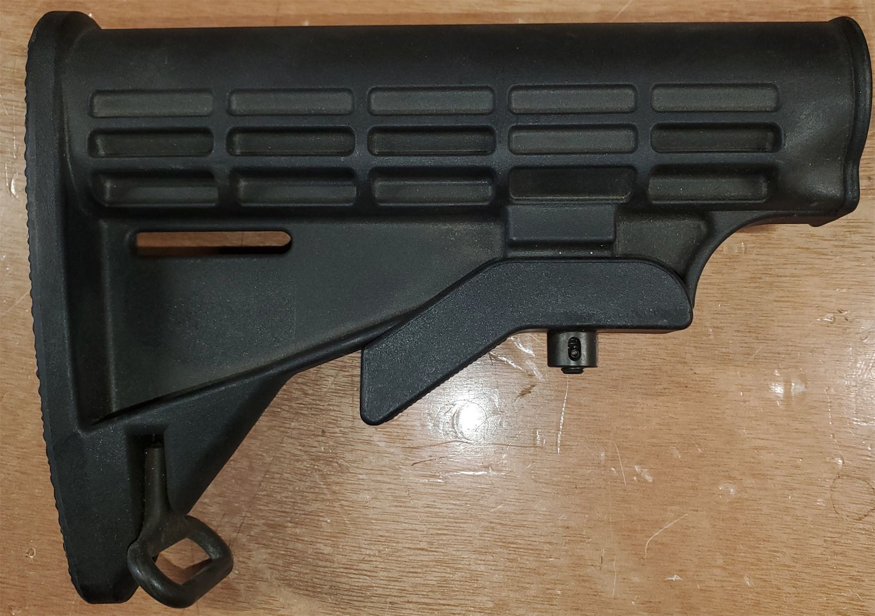 Black polymer adjustable stock with sling swivel. Fits all standard AR's and Wk's.