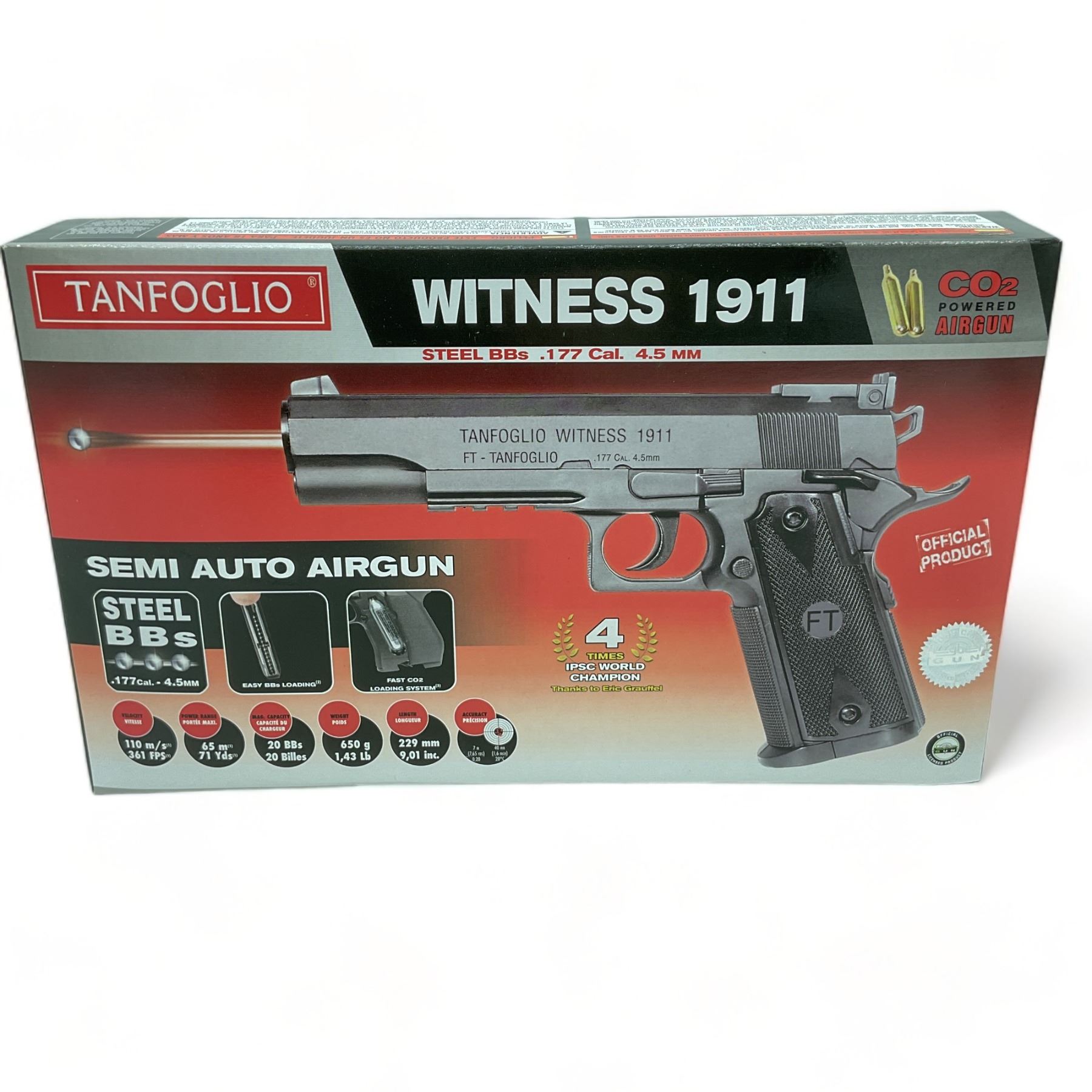 Tanfoglio Witness 1911 .177 Cal CO2 Powered Air Gun, Takes Steel 4.5 mm BBs, New