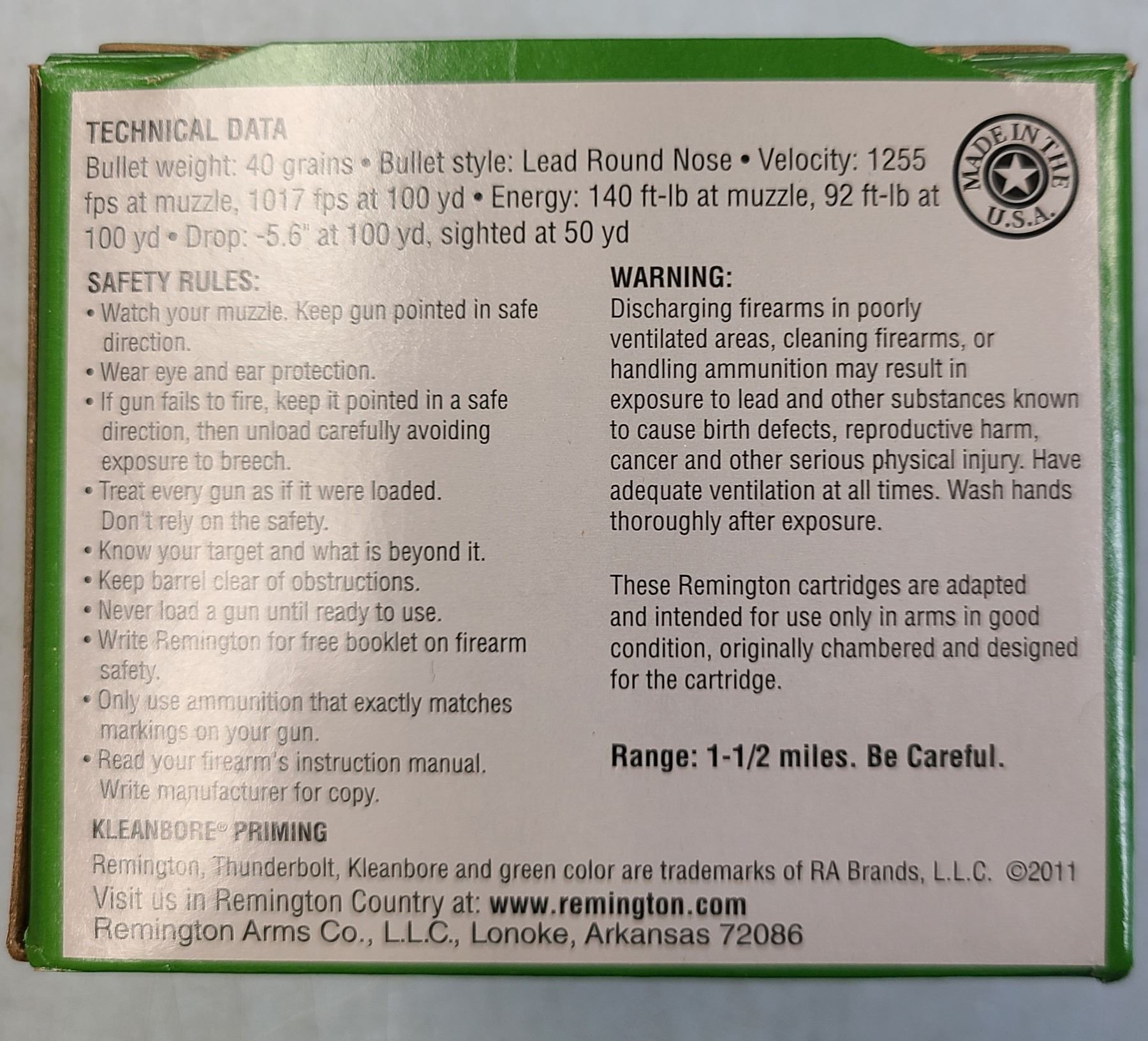Lot 478 Remington Thunderbolt .22lr High Velocity 500 rds 40 gr 1255 fps