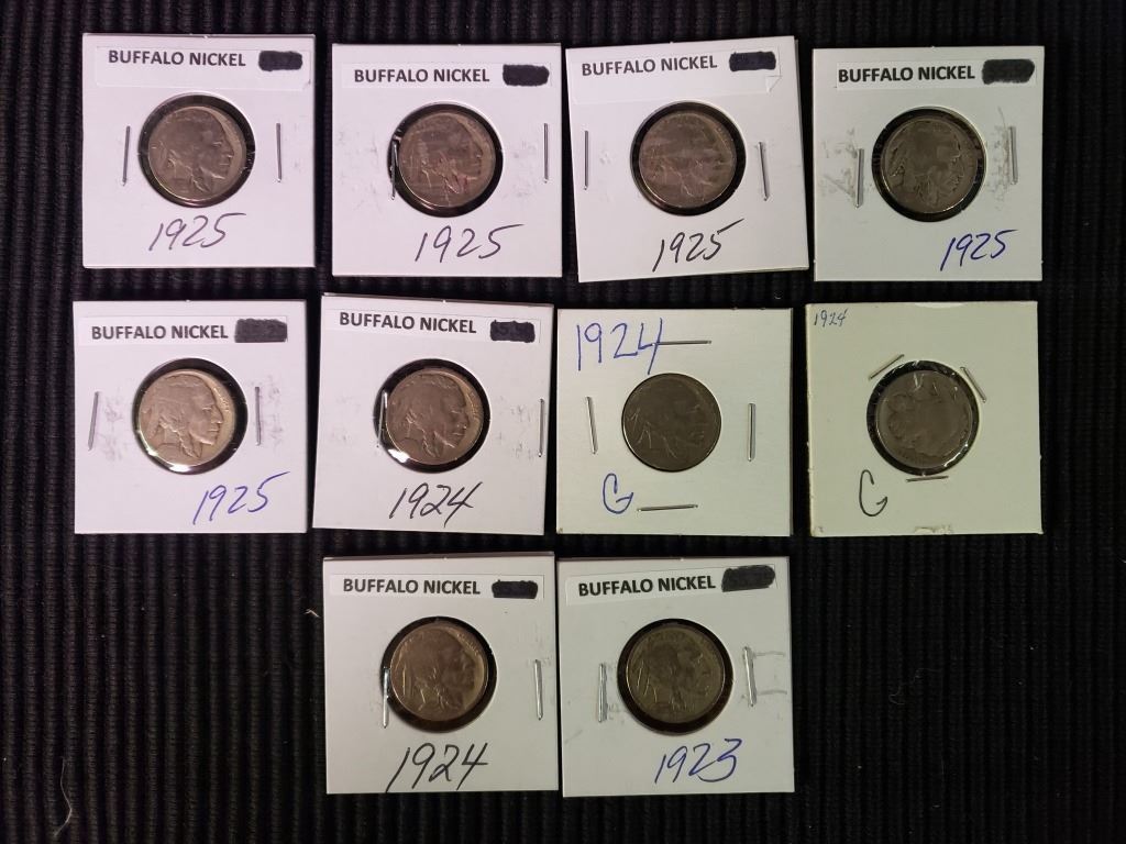 Lot 225 10 Buffalo Nickels, Random Dates, At Least Good Condition