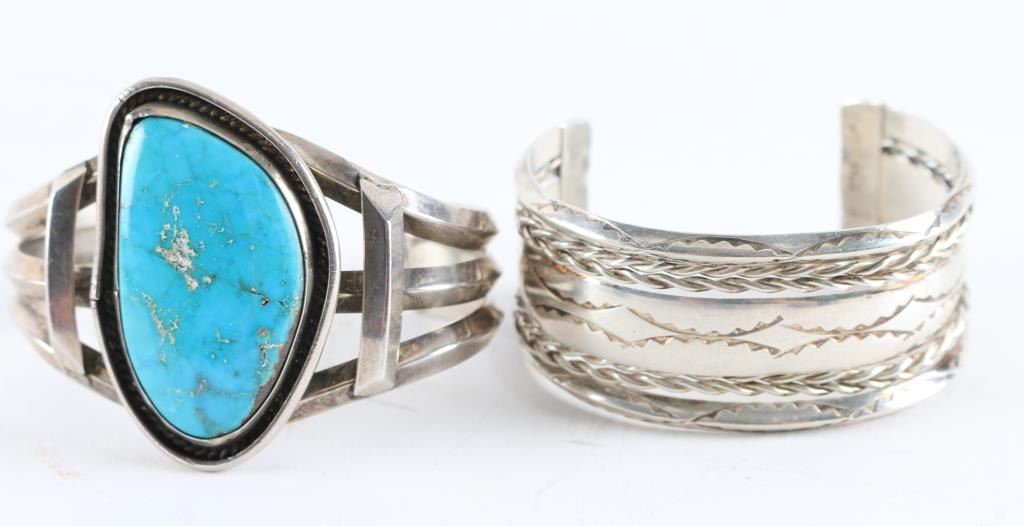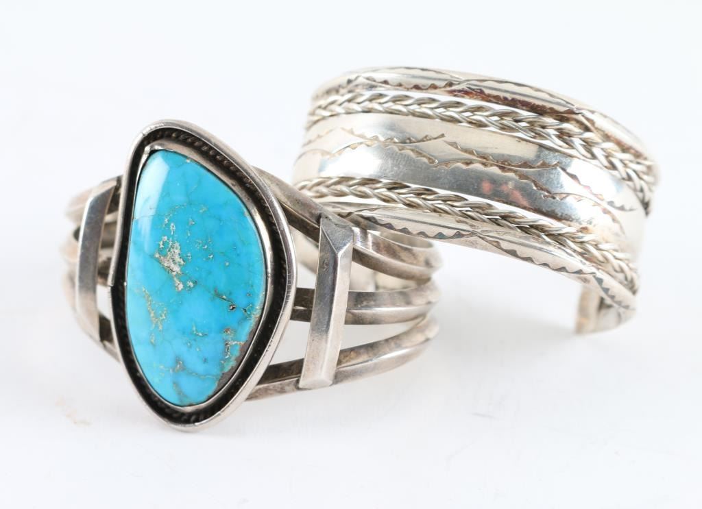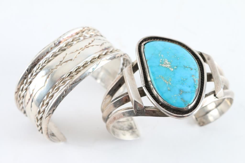 (1) Turquoise Cuff with sterling silver (1) All Sterling silver cuff