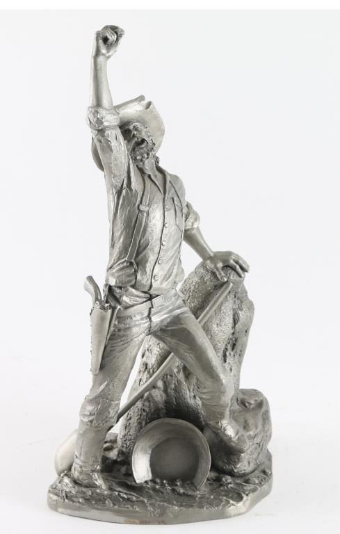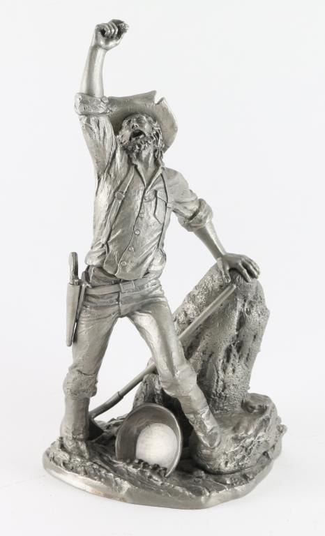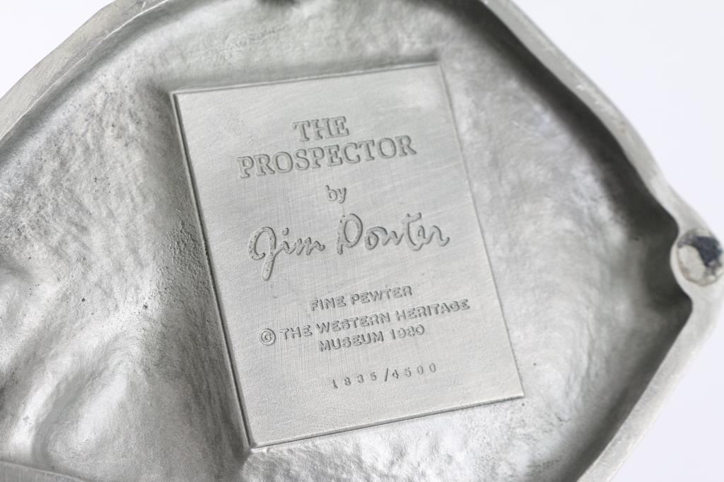 By artist "Jim Ponter" entitled "The Prospector", signed, numbered 1835/4500. Crafted by The Western Heritage Museum. Measures 11x5".