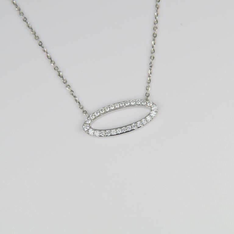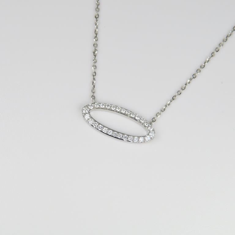 Pendant featuring 28 ‘IDEAL’ cut Diamonds weighing approx. 0.20 carats with F-G colors and VS clarity set in an oval shaped white gold setting.