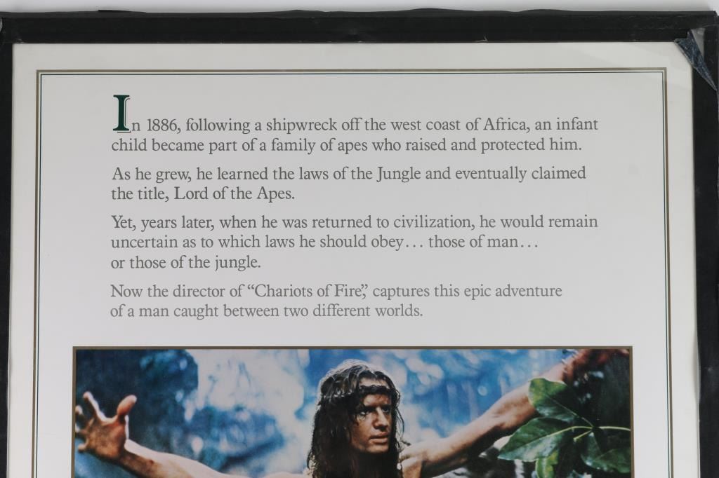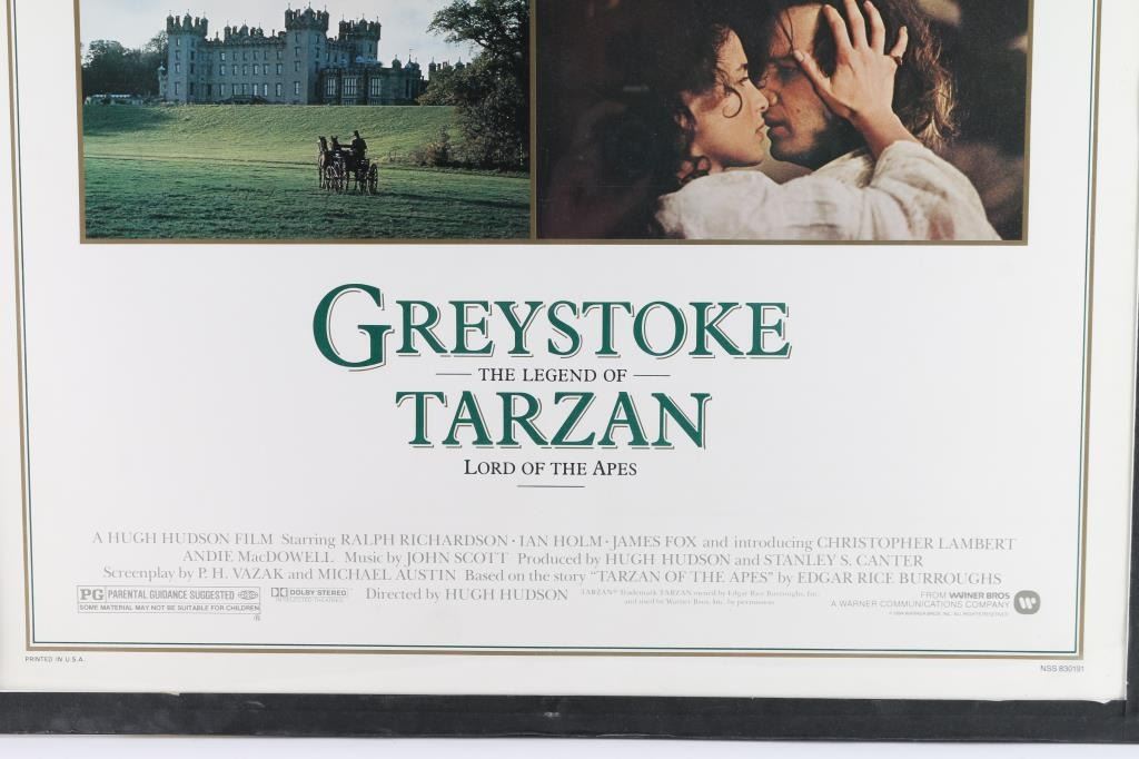 From the movie, "Greystoke The Legend of Tarzan Lord of the Apes". Released in 1984 by Warner Bros, starring Christopher Lambert and Andie Macdowell. "NSS 830191" at bottom middle. In fine condition. Image dimensions: 43"H X 21"W. From the Joseph Musso Collection