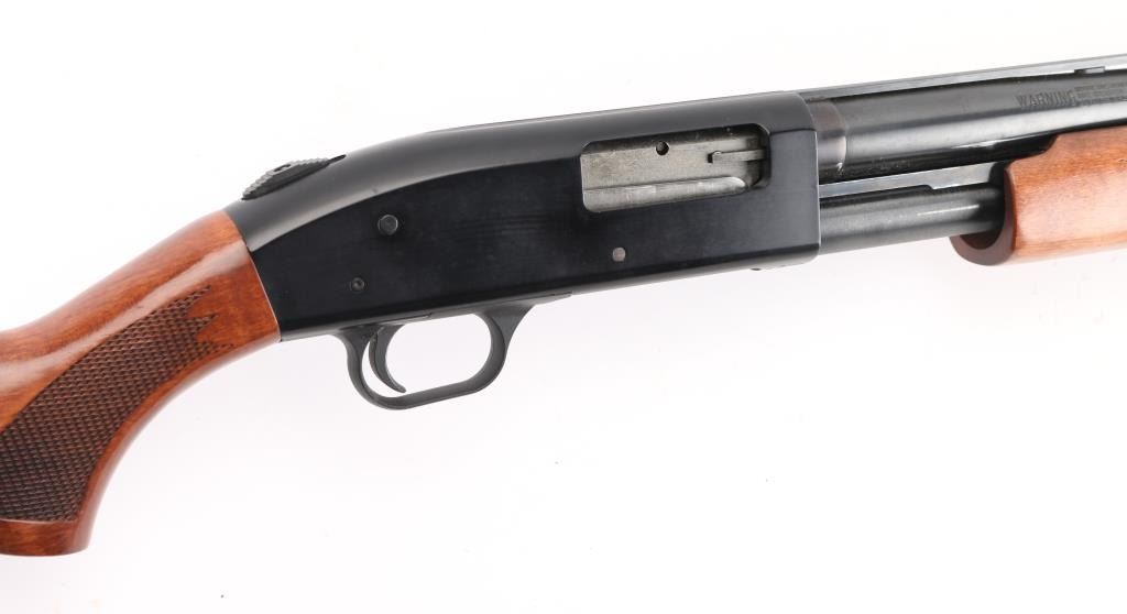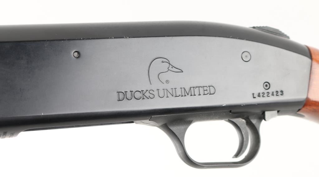 SN: L422423"Ducks Unlimited' slide action repeating shotgun chambered for 2 3/4" , & 3" 12 gauge shells. Features a blued finish, 28" vent rib, barrel, white bead front sight & brass mid-sight, Accu-Choke,marked MOD. 2/3 length tube magazine, smooth trigger, sliding safety, checkered walnut slide handle and pistol grip shoulder stock with factory recoil pad. Black painted receiver. LOP is 14". Shotgun exhibits approximately 97% of metal finish with scratches, minor friction wear on tube, and action bars. Bore appears excellent, wood is very good with minor scratches. Action is smooth/tight. NRA Condition-Very Good Modern Firearm.