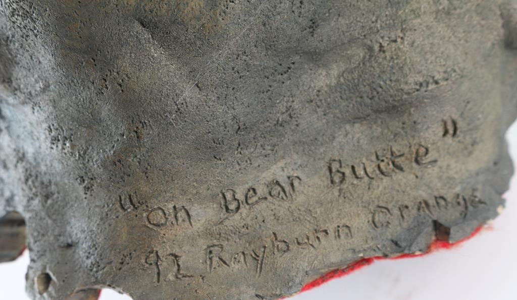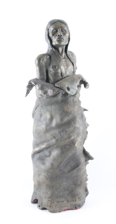 By Raymond Orange entitled "Bear on Butte" signed on base in good condition, measuring approx 20x6"
