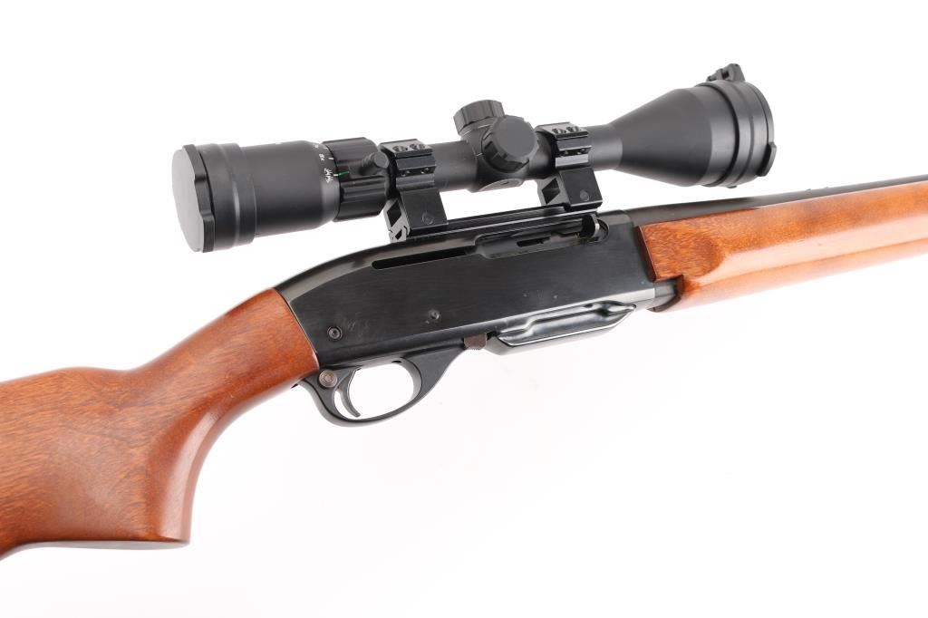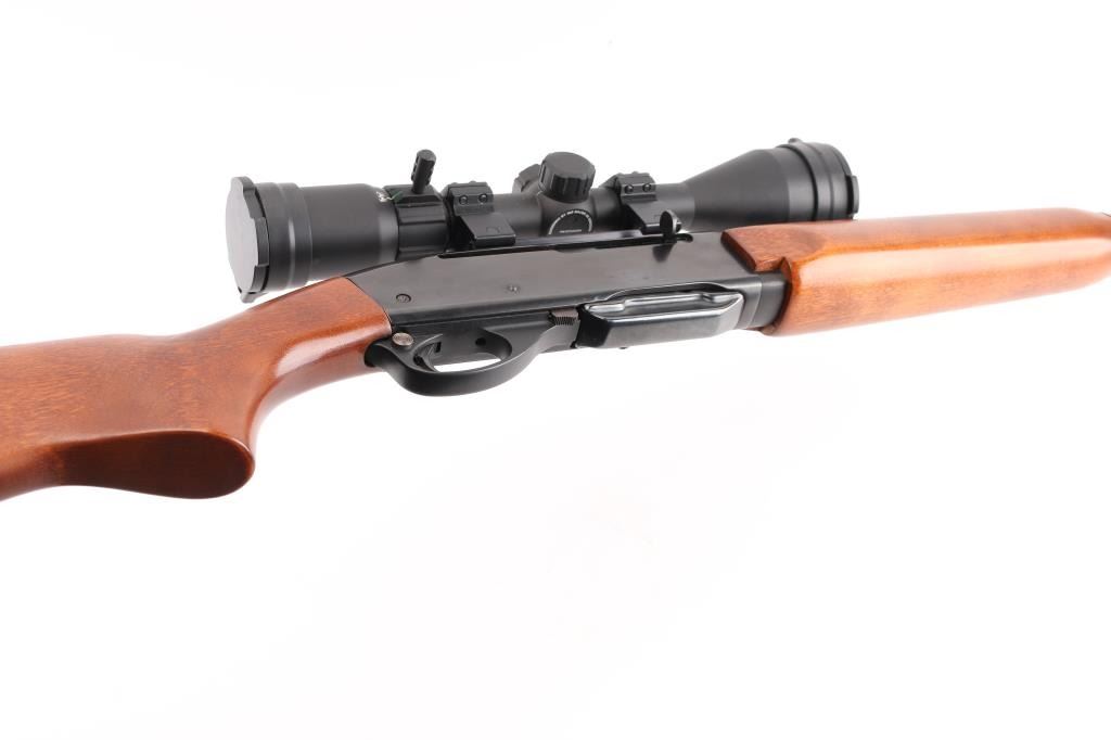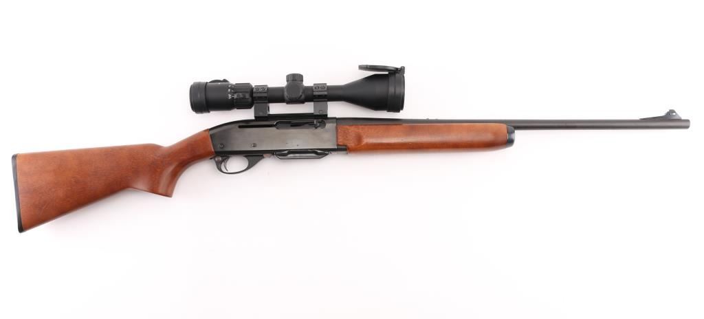 SN: 8420885 Semi auto rifle in .30-06. Manufactured 1984-87. Auto-loading, gas operated, 22" tapered barrel with ramped white bead front sight, drilled/tapped for rear sight, blue finish, smooth walnut stocks with black forearm cap, factory buttplate, 4 rd magazine. Mounted with a Sig Sauer Buckmaster 3-9X50 scope, clear optics. Bore is excellent/bright, action is crisp, wood is excellent, & blue is about 97% with a small spot of rust on lower barrel, & a few minor scratches. NRA Condition-Near Excellent. Modern Firearm.