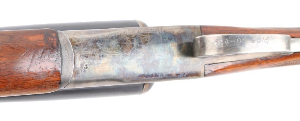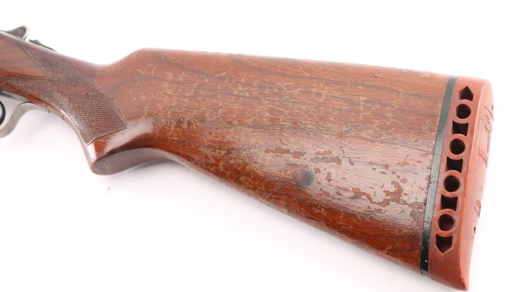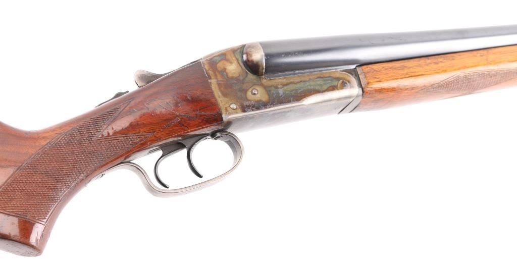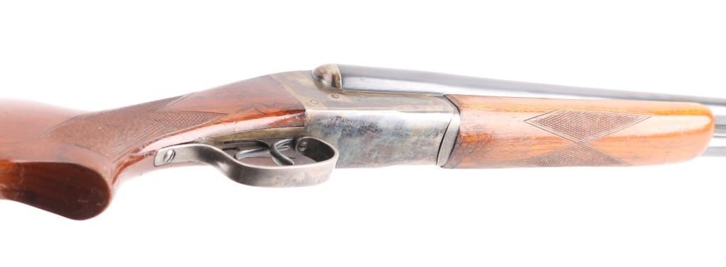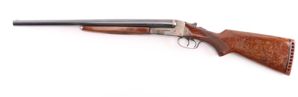 'Coach gun' configuration. Early trade name internal hammer box lock shotgun made by Stevens for sale by Sears. No shell length marking. Features blued finish, checkered wood stocks, 20" barrels, (Shortened) Brass front &mid beads, low serrated rib, choked IC, double triggers, extractor, tang safety (resets to 'safe' when top lever moved), ventilated rubber recoil pad. LOP 14 1/4" from front trigger. Bores are very good condition. Retains 90% blue on barrels, with scratches. Receiver is case colored with lots of scratches/handling wear on the bottom metal. Wood is good/solid with scrapes and dings, and loss to the varnished finish. Recoil pad is good condition, fair fit. Manufactured 1951. Condition is NRA Good. C&R Firearm.