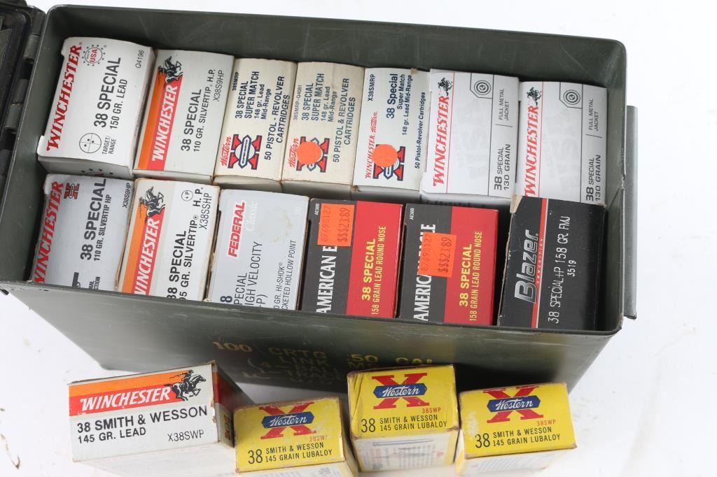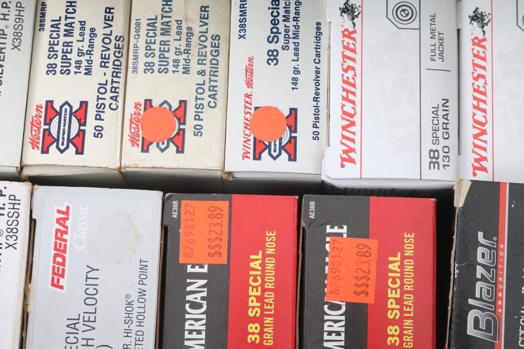 Approx. 700 rounds of new 38 Special ammo and approx. 200 rounds of new 38 Smith & Wesson ammo, by various makers in factory boxes.