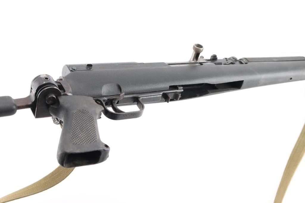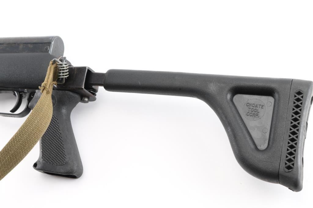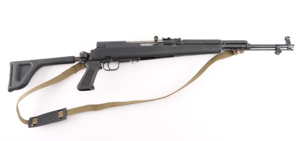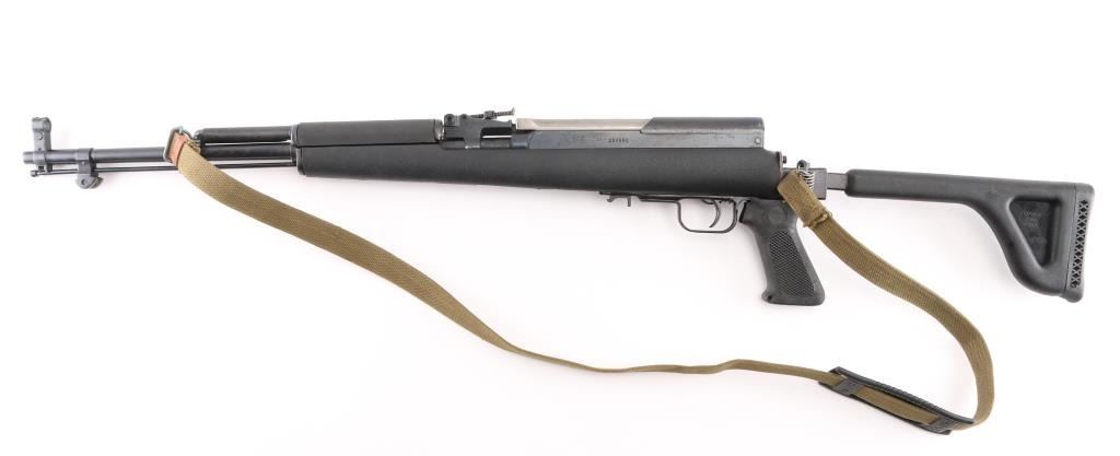 Chinese military semi-automatic rifle imported by JPE Pas, CA. 20" barrel, black Choate synthetic stock with modified checkered pistol grip, Choate synthetic folding stock, mount for folding bayonet, cleaning rod under barrel, protected post front & tangent rear sights, manual safety, front and back sling swivels. Bore is excellent/bright. Metal retains 90% finish with pitting and rust on receiver and edge losses on barrel. Stock is very good condition. Comes with Chinese military green cotton web sling with leather end tab. Condition is NRA Very Good (missing parts) *** Modern Firearm ***