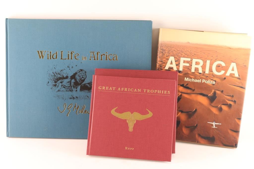 (1) Great African Trophies by Rupp First Edition #340 (1) Africa by Michael Poliza 2007 - light water damage (1) Wild Life in Africa by John G Millais 2009 - heavy water damage