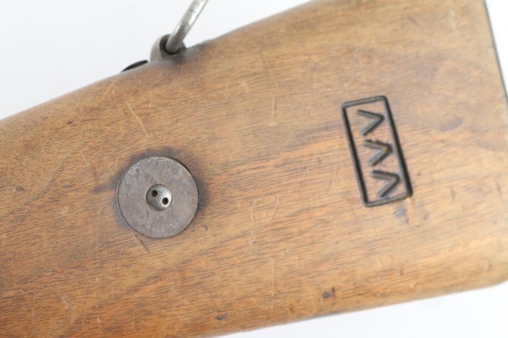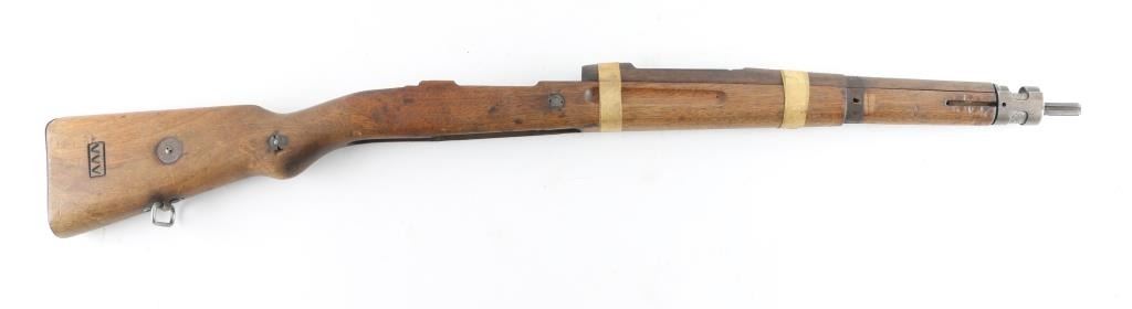 unknown nation. Uncut, with handguard, front band and bayo lug. No rear band. No spring for front band. Proper length for a 24" barrel, proper profile for a straight bolt handle. Appears lightly sanded.