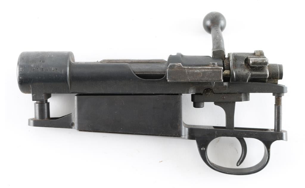 Large ring 1898 Mauser (action only) in overall good (or better) condition, mismatched, no barrel, no stock or other fittings. Action appears complete, with turned down bolt handle. Blued finish, hinged floorplate. Some patina, very little pitting. Condition is NRA Good++ (Action only) *** C&R Firearm ***