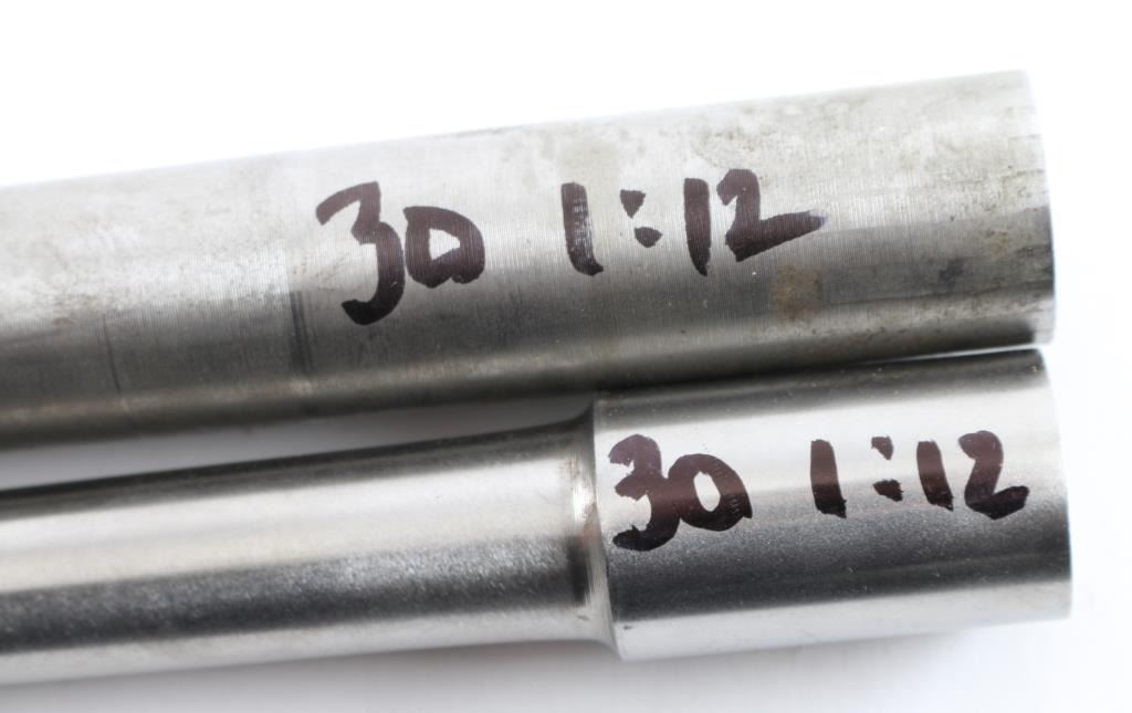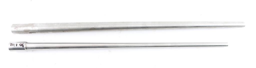 One is Heavy Profile 27.5" long, other is featherweight profile 25.5" long. Both un-chambered, marked "DOUGLAS XX 30 CAL 12"