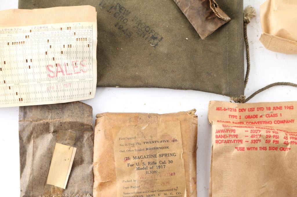 Some labeled, some not. Includes 2 barrels, many other parts. Also a pack of magazine springs for 1917 rifle with Remington label, 1919 date. Approx 11 pounds including the packaging.