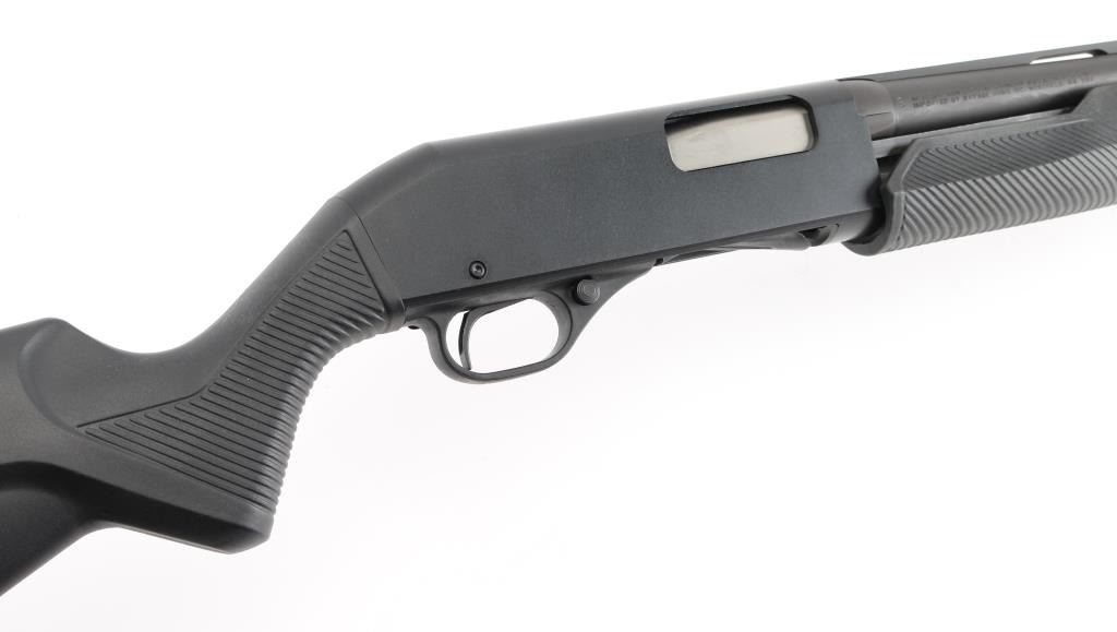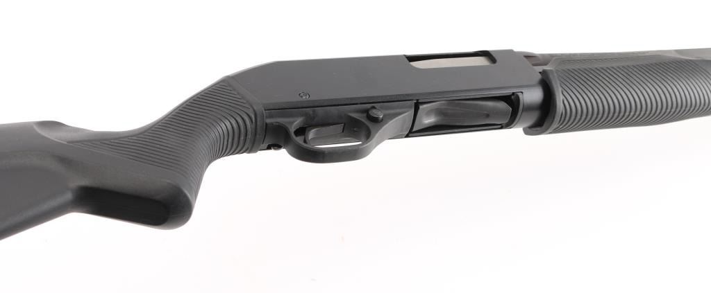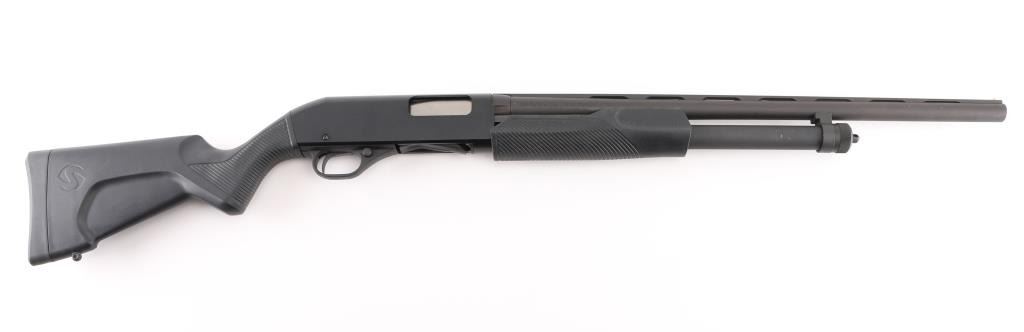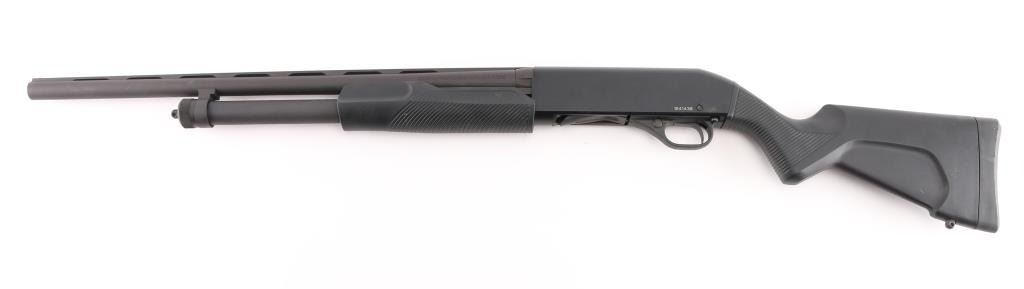 Made in China by Sun City Machinery and imported by Savage Arms Westfield, MA. Slide/pump action shotgun chambered in 20 Ga for 2.75" & 3" shells, light black alloy receiver, 22" steel serrated ribbed barrel with adjustable cylinder choke, 5 round magazine tube and synthetic stock with rubber recoil pad. Condition is NRA Excellent. Modern Firearm.