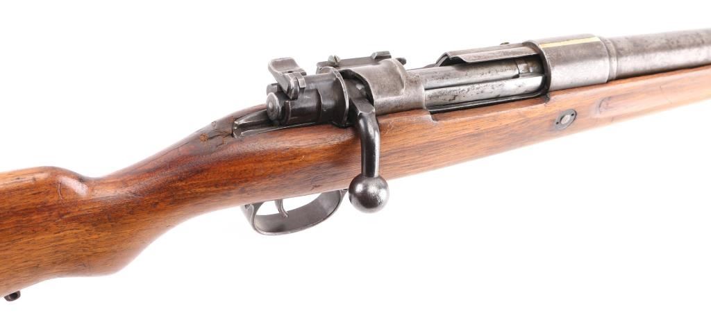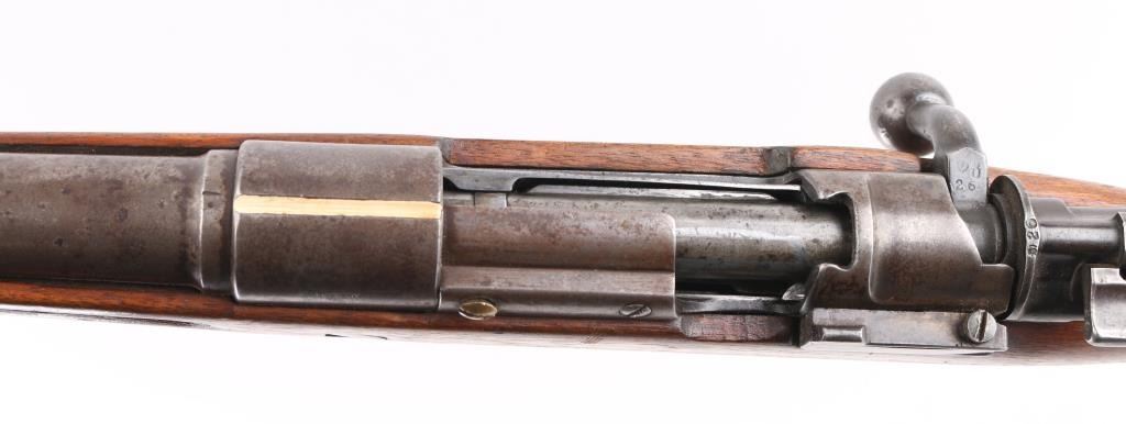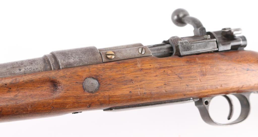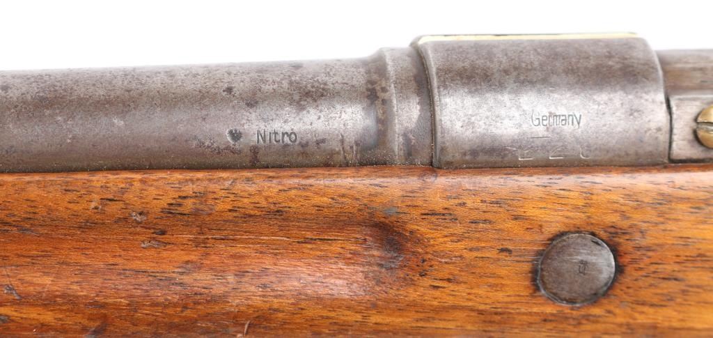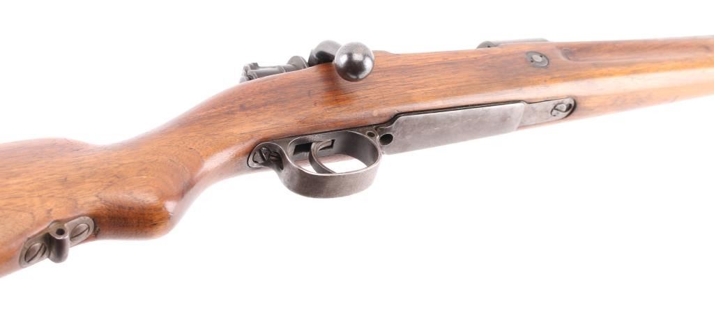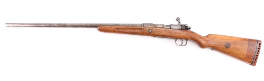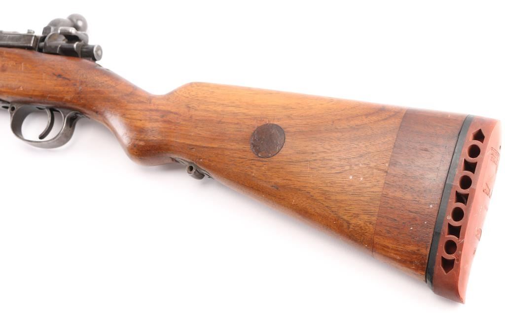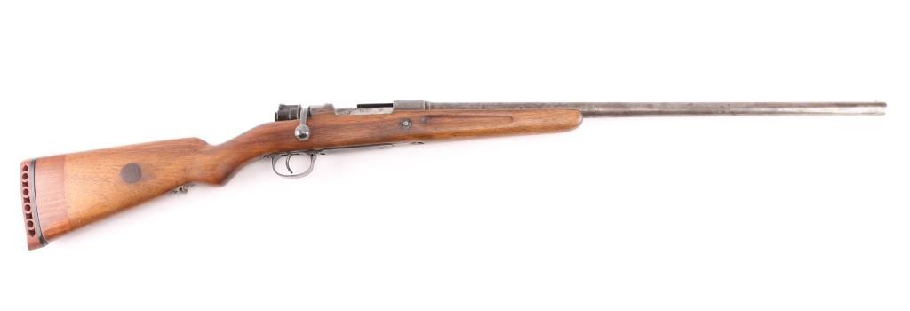 Bolt action shotgun. Blue finish, with wood stock. 26" barrel with bead front sight. Mauser style action with internal magazine with bottom plate. Stock has numerous dings and scratches, with "Geha" medallions missing and filled with wood on both sides of the rear stock. Blue finish is faded with heavy pitting throughout. Bore is very good and action is smooth. NRA condition- Very good. Modern Firearm.