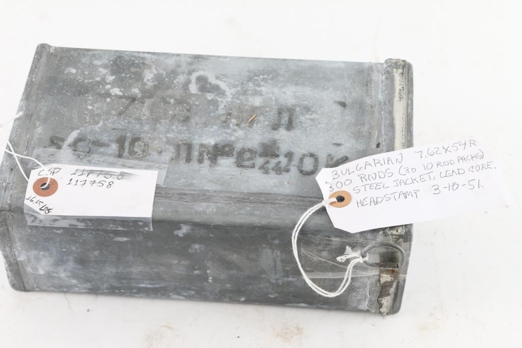 Lot of 7.62 X 54R ammo in sealed can (unopened). 300 rounds of Bulgarian steel jacket, lead core. weighs approx. 16.65 lbs.