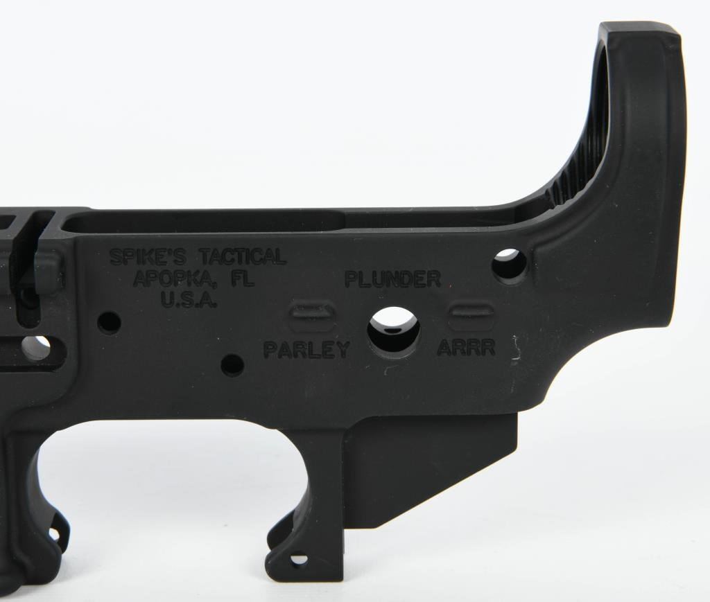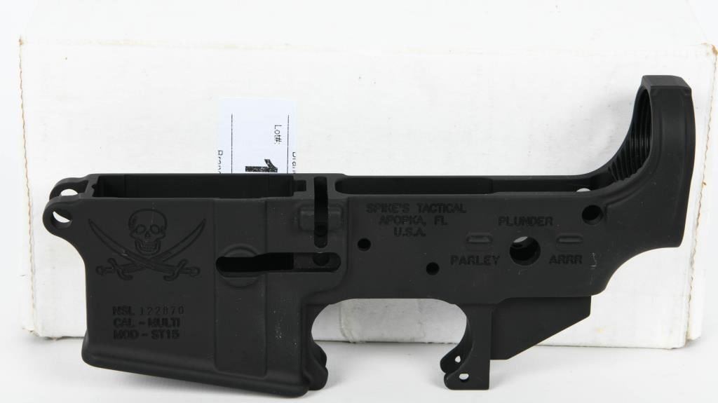 Now available for auction is the Spikes Tactical Stripped Lower Receiver featuring the Pirate Calico Jack design in Black. These stripped lowers are manufactured to the highest standards, making them an excellent choice for your firearm build or as part of your collection. Key Features of the Spikes Tactical Stripped Lower Receiver: Pirate Calico Jack Design: The lower receiver features the distinctive Pirate Calico Jack design, adding a unique and visually appealing touch. Stripped Lower: As a stripped lower, it provides a versatile foundation for customization, allowing you to build your firearm according to your preferences. High Standards of Manufacturing: Spikes Tactical is known for its commitment to quality, and these stripped lowers are made to the highest standards to ensure reliability and durability. Whether you're planning a new build or looking to add to your collection, Spikes Tactical Stripped Lower Receivers are a solid choice. Bid confidently on this Pirate Calico Jack design in Black, and ensure awareness of firearm laws and regulations in your area. Bid responsibly to secure this high-quality and uniquely styled stripped lower receiver for your firearms.