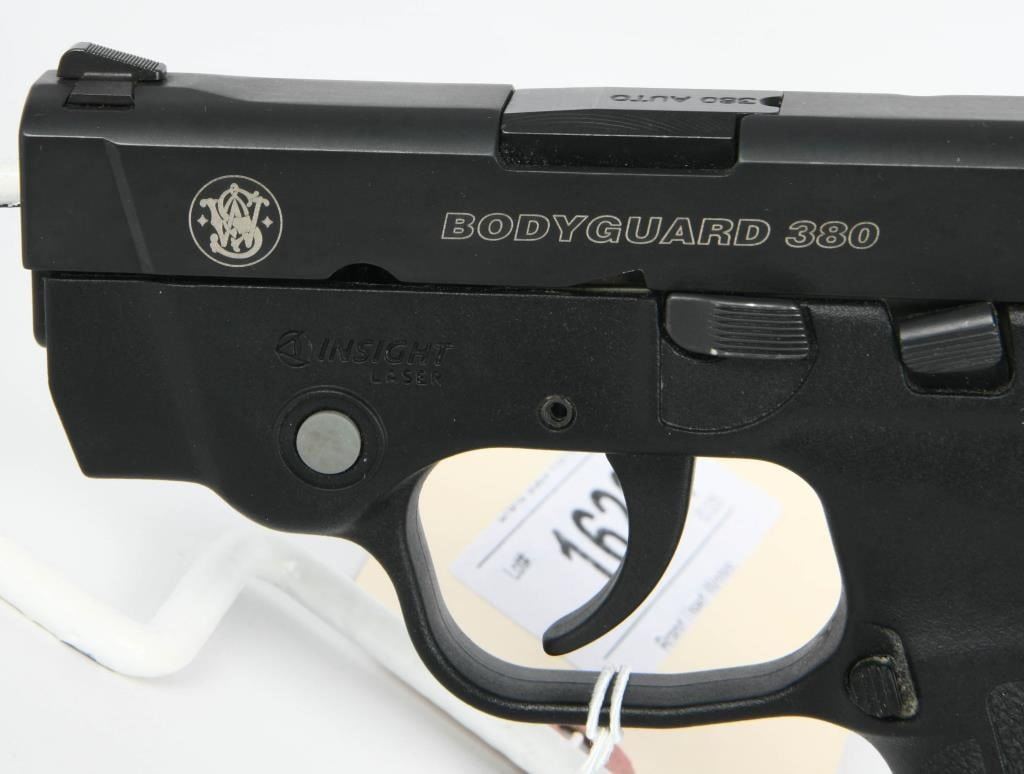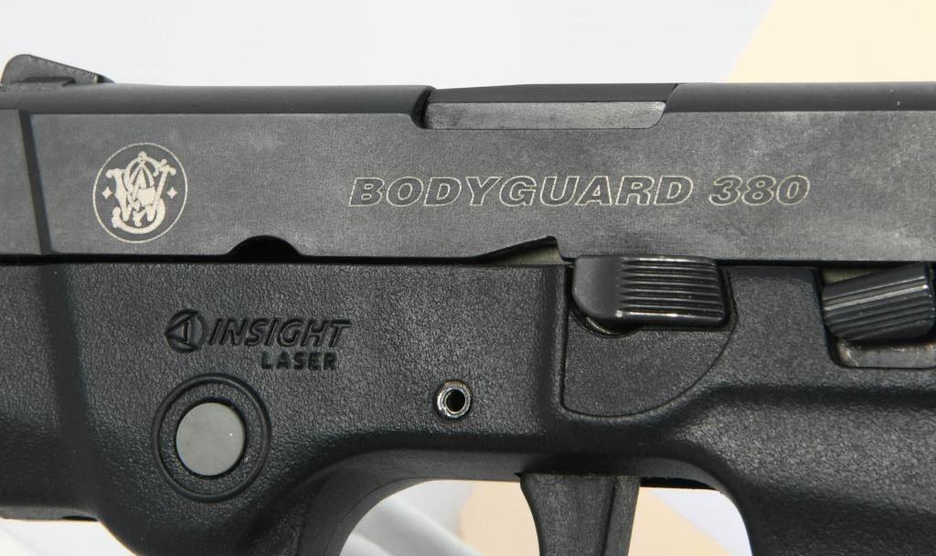 Introducing the Smith & Wesson Bodyguard Semi Auto Pistol, chambered in .380 ACP and equipped with an integrated Insight laser. This compact and concealable firearm comes with one magazine and appears to be in great condition. The Bodyguard series from Smith & Wesson is known for its compact design and integrated laser, providing an added element of accuracy for quick target acquisition. The .380 ACP chambering makes it suitable for concealed carry, offering a balance of firepower and size. Bid confidently on this Smith & Wesson Bodyguard, a reliable and compact semi-auto pistol equipped with a built-in laser. Whether for personal defense or concealed carry, this firearm is designed for ease of use and accuracy in a compact package. Secure your opportunity to own this well-maintained and accessorized pistol.