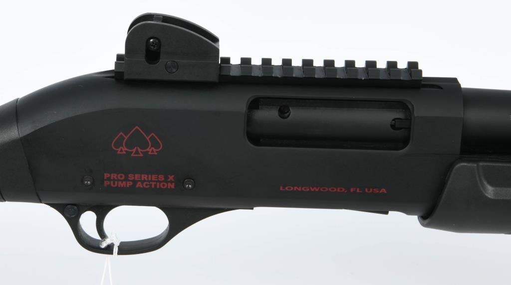 Here we have the Black Aces Tactical Pro Series X Pump Action Shotgun, a sleek and formidable firearm chambered in 12 gauge, ready to handle those 3" shells with ease. The 18 1/2" barrel comes equipped with a threaded choke, allowing for versatility in your shooting experience. In the tactical realm, this shotgun stands out with its picatinny rail, providing you with the option to customize your setup with various accessories. The front and rear sights enhance your aiming precision, ensuring accuracy in every shot. The black-on-black design gives this shotgun a stealthy and modern appearance, perfectly complementing its synthetic stock. Whether for home defense or the range, the Black Aces Tactical Pro Series X is a reliable and stylish choice. Take command with this pump-action powerhouse and experience the confidence it brings to your shooting endeavors. Remember to adhere to your local, state, and federal laws. Happy bidding!