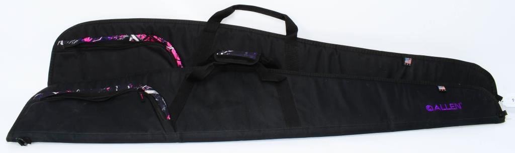 Hello, rifle enthusiasts! Introducing the Dynamic Duo: 2 Allen Soft Padded Scoped Rifle Cases featuring a distinctive purple camo color outline. Each case is equipped with a side pouch and appears in overall good condition, ready to safeguard your prized rifles. Commence your bidding for the Dynamic Duo: 2 Allen Soft Padded Scoped Rifle Cases. Bid confidently to secure this set, adding both style and reliable protection to your rifle transportation. Place your bids now and elevate your firearm storage with these visually appealing and functional cases!