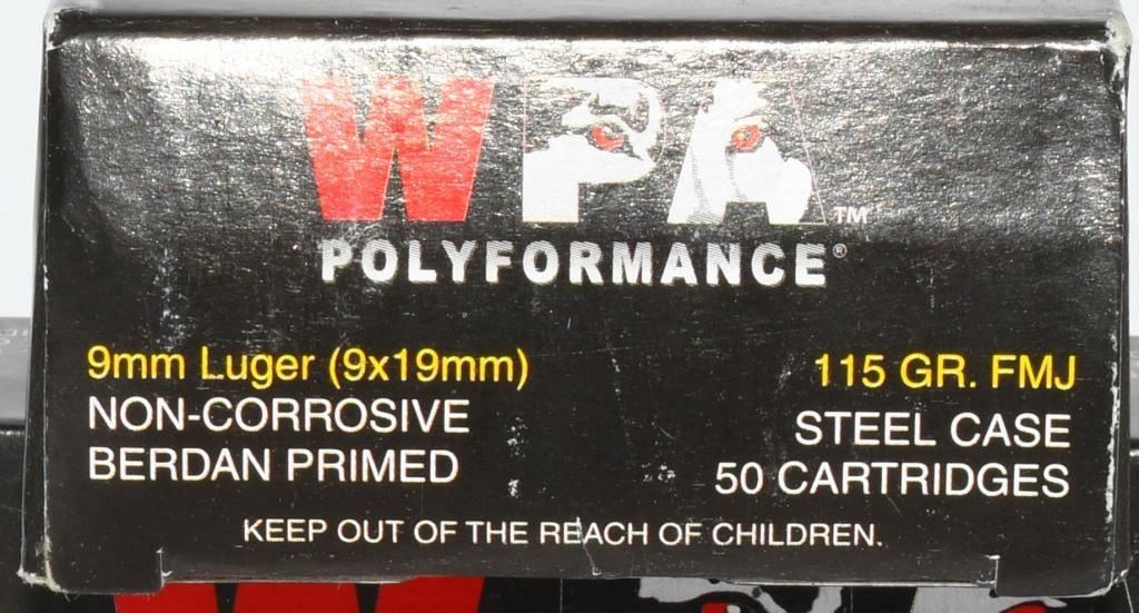 Secure 100 rounds of WPA 9mm Luger ammunition, featuring a 115-grain full metal jacket and steel case. Manufactured to provide reliable and cost-effective performance, WPA (Wolf Performance Ammunition) is known for offering affordable options for a variety of shooting applications. The 115-grain full metal jacket construction ensures smooth feeding and reliable cycling in your 9mm Luger firearms. With steel cases and Berdan priming, these rounds provide an economical choice for range practice and training sessions. Bid confidently on this opportunity to acquire 100 rounds of WPA 9mm Luger ammunition and enhance your shooting experience with cost-effective and reliable rounds. Note: Please ensure compliance with local and state regulations regarding the purchase and possession of ammunition.