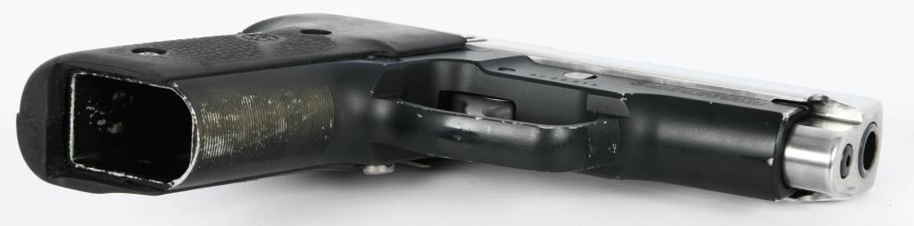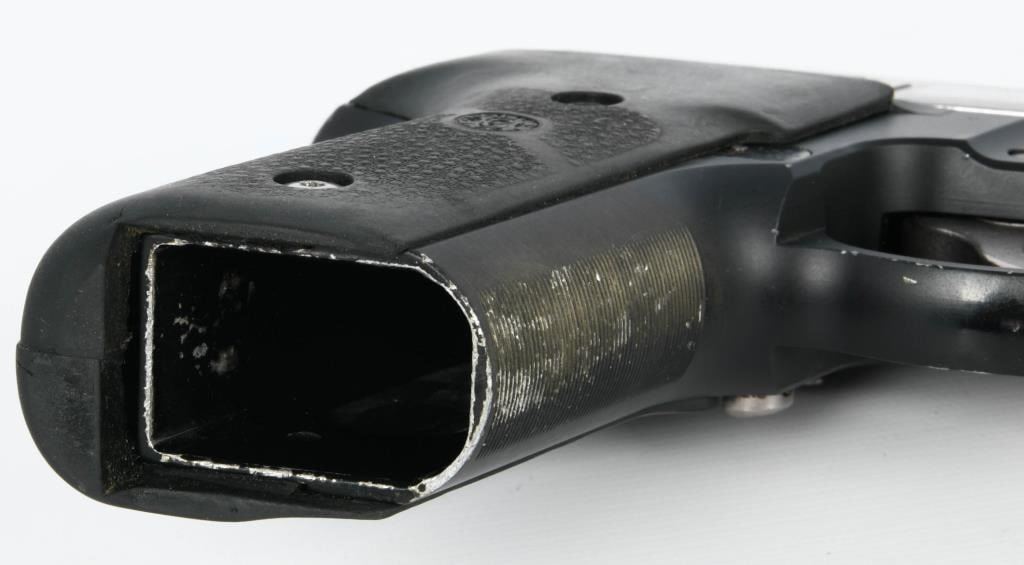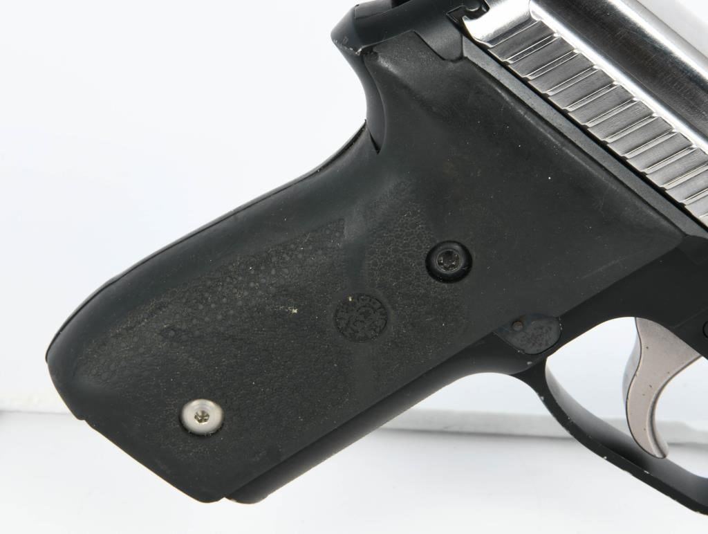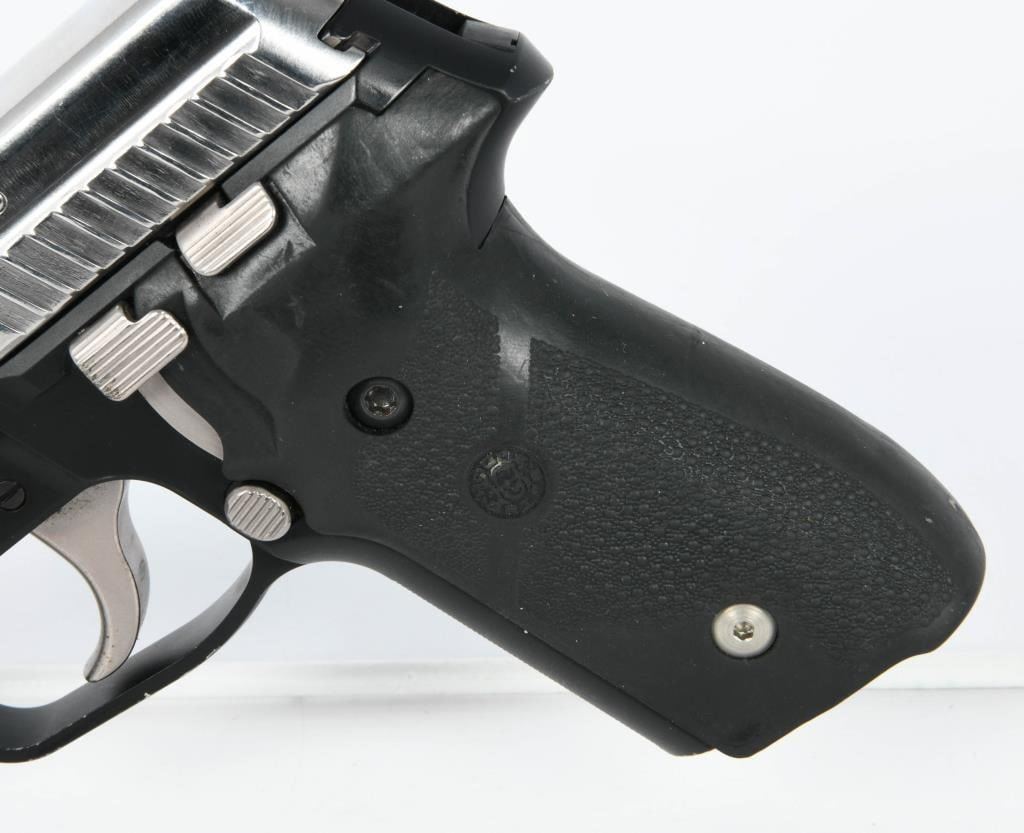 The Sig Sauer P229 Stainless Duo-tone, chambered in .40 S&W, is a semi-automatic pistol with a distinctive two-tone finish. The frame is made in Germany, reflecting Sig Sauer's heritage of precision engineering. This particular variant features a stainless steel slide, contributing to its durability and resistance to corrosion. Notably, the pistol is wrapped with Hogue grips, known for their ergonomic design and comfortable feel, enhancing the shooter's control and handling. The inclusion of Hogue grips can improve the overall shooting experience by providing a secure and tactile grip. It's worth mentioning that this Sig Sauer P229 variant comes without a magazine. Magazines for the P229 in .40 S&W caliber are typically available separately, allowing users to choose the capacity that suits their preferences and needs. The Sig Sauer P229 has earned a reputation for reliability and accuracy, making it a popular choice among law enforcement and civilian shooters alike. Its blend of craftsmanship, design, and performance reflects Sig Sauer's commitment to producing high-quality firearms.