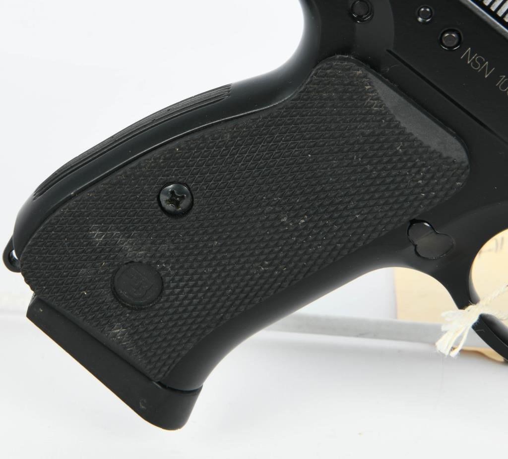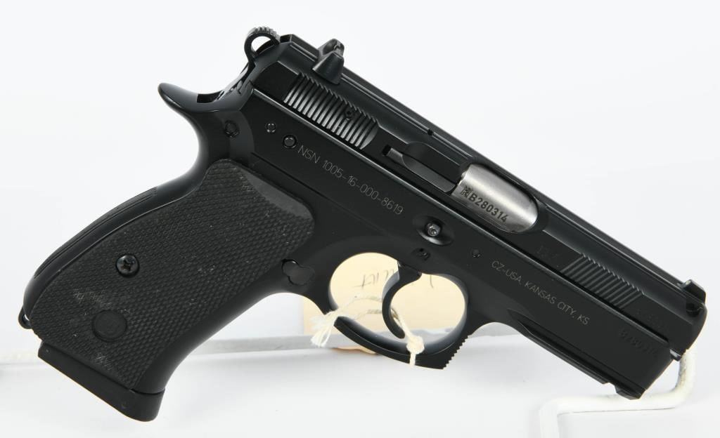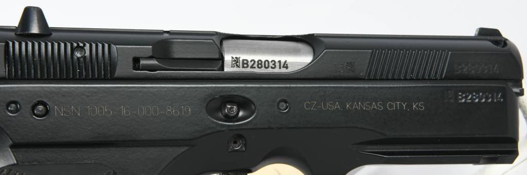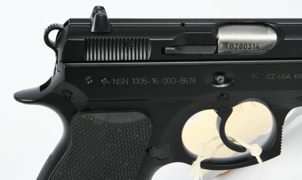 Introducing the CZ 75 P-01 Semi-Auto Pistol, chambered in 9mm and presented in a sleek black-on-black design. This pistol comes with one magazine and is a compact, aluminum-framed firearm initially designed for LE and Military duty. However, its compact size and reduced weight due to the forged alloy frame make it equally ideal for discrete carry. The CZ P-01 is equipped with a decocker, offering convenience for those who prefer hammer-down carry. Its heavy first-round trigger pull transitions to a light, crisp single action for subsequent shots. Designed in 2001 and NATO-approved in 2003, the P-01 was the first CZ model to benefit from updated manufacturing technology at CZ's Uhersky Brod factory. Subsequent production upgrades have been implemented across the CZ 75 family and various rifle models. The P-01/P-06 components are fully interchangeable with each other, requiring no individual fitting, thanks to careful re-design work that ensured reliability and accuracy were maintained. Featuring an integral accessory rail on its dust cover, the P-01 easily accommodates industry-standard lights and lasers for low-light use. Notably, the CZ P-01 underwent rigorous testing, including some of the most aggressive small arms testing ever conducted. It emerged with exceptional reliability, with an average of only 7 stoppages per 15,000 rounds fired during testing. This represents a remarkable failure rate of 0.05% or a Mean Rounds Between Failure (MRBF) of 2142. For many years, the CZ P-01 carried an NSN engraved on its frame, making it the first NATO-spec pistol available to the public. While current models may or may not have an NSN due to upgrades, this specific one retains the NSN engraving, exemplifying its historical significance and outstanding performance.