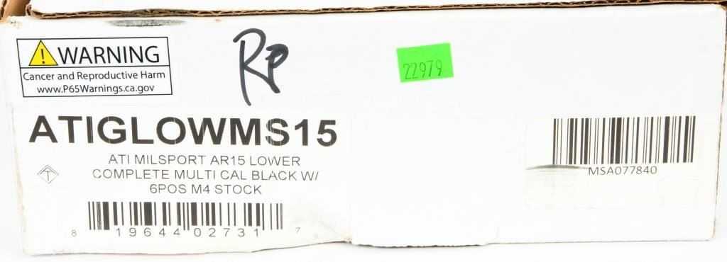 Introducing the brand-new ATI Millsport Complete AR-15 Lower Receiver, a testament to quality and reliability in the world of firearms. This complete AR lower features an M4-style metal trigger group, ensuring precise and consistent performance with each trigger pull. The 6-position rear stock adds versatility to your shooting experience, adapting to different preferences and scenarios. Crafted to MILSPEC standards, the ATI Millsport Lower Receiver promises durability and compatibility with a wide range of AR-15 components. The standard M4-style design maintains the classic aesthetics and functionality that shooters appreciate. This lower receiver is not just a component; it's the foundation for your custom AR-15 build. Whether you're an experienced enthusiast or a newcomer to the world of firearms, the ATI Millsport Lower Receiver offers a reliable and customizable platform for your shooting needs. Specifications: Complete AR-15 Lower Receiver M4-Style Metal Trigger Group 6-Position Rear Stock Standard MILSPEC Design Compatibility with a Wide Range of AR-15 Components This ATI Millsport Lower Receiver is ready to be part of your next AR-15 build. Bid now to secure this brand-new, quality lower and elevate your shooting experience.