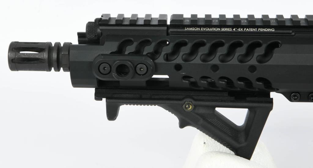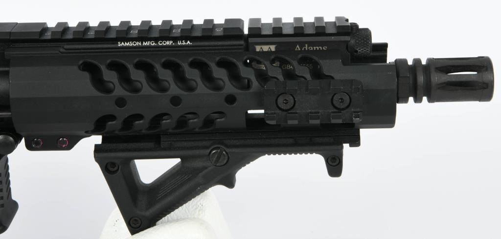 Introducing the Adams Arms Model AAP Semi-Automatic Pistol, a robust firearm chambered in 5.56 NATO. This pistol is equipped with a Samson Evolution Series rail, offering a versatile platform for accessory attachment and customization. A notable feature of the Adams Arms Model AAP is its adjustable gas piston system, providing users with enhanced control over the firearm's performance and mitigating recoil for improved accuracy. The inclusion of a Magpul AFG-2 foregrip further enhances handling, offering a comfortable and ergonomic grip during operation. Crafted with precision and designed for versatility, the Adams Arms Model AAP stands as a reliable and well-equipped option for enthusiasts seeking a 5.56 NATO chambered semi-automatic pistol with advanced features.