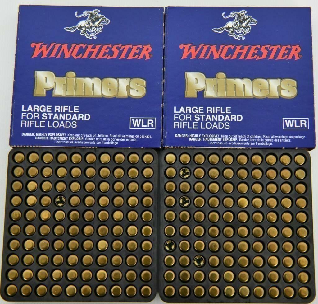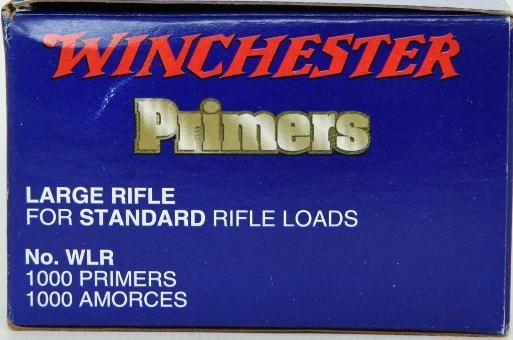 1000 Count of Winchester Large Rifle Primers, These non-corrosive, all weather primers deliver fast, dependable ignition under any shooting condition. Primers are constantly and rigorously tested for consistency and sensitivity at temperatures and conditions far beyond the range of normal usage. Winchester guarantees better sensitivity for more positive firing in all guns, carefully-controlled weights of primer mixtures, consistency in size and quality, precise measurements and tolerances for anvil heights and stability in extremes of temperatures and humidity.