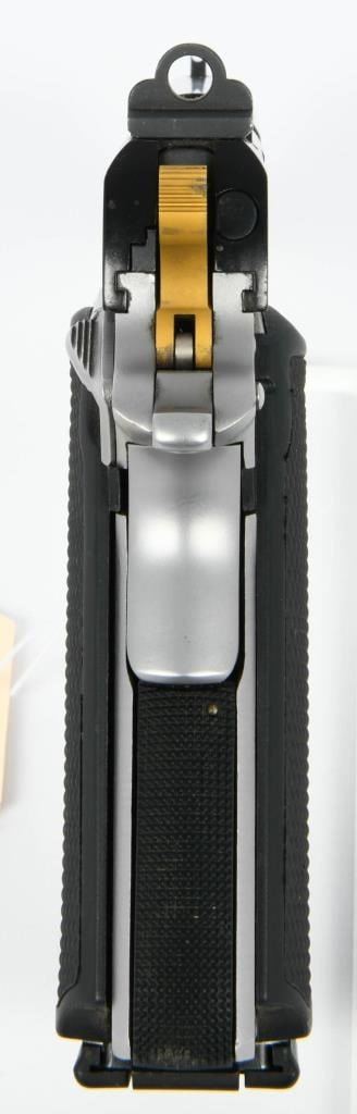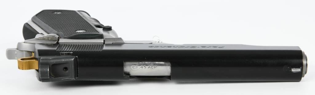Introducing the Para Ordnance P15-45 Semi-Automatic Pistol, a robust and stylish firearm chambered in .45 ACP. This particular model features an eye-catching duo-tone finish, adding a touch of elegance to its design. It comes complete with one magazine, providing a reliable ammunition feed for an uninterrupted shooting experience. Notable for its distinctive features, the Para Ordnance P15-45 includes a Gold Skeletonized hammer, contributing to both aesthetics and functionality. The finger-grooved grips enhance control and comfort during operation, making it an ergonomic choice for enthusiasts. The Para Ordnance P15-45 is a blend of craftsmanship and style, offering a .45 ACP chambered pistol that stands out with its duo-tone finish and thoughtful features.