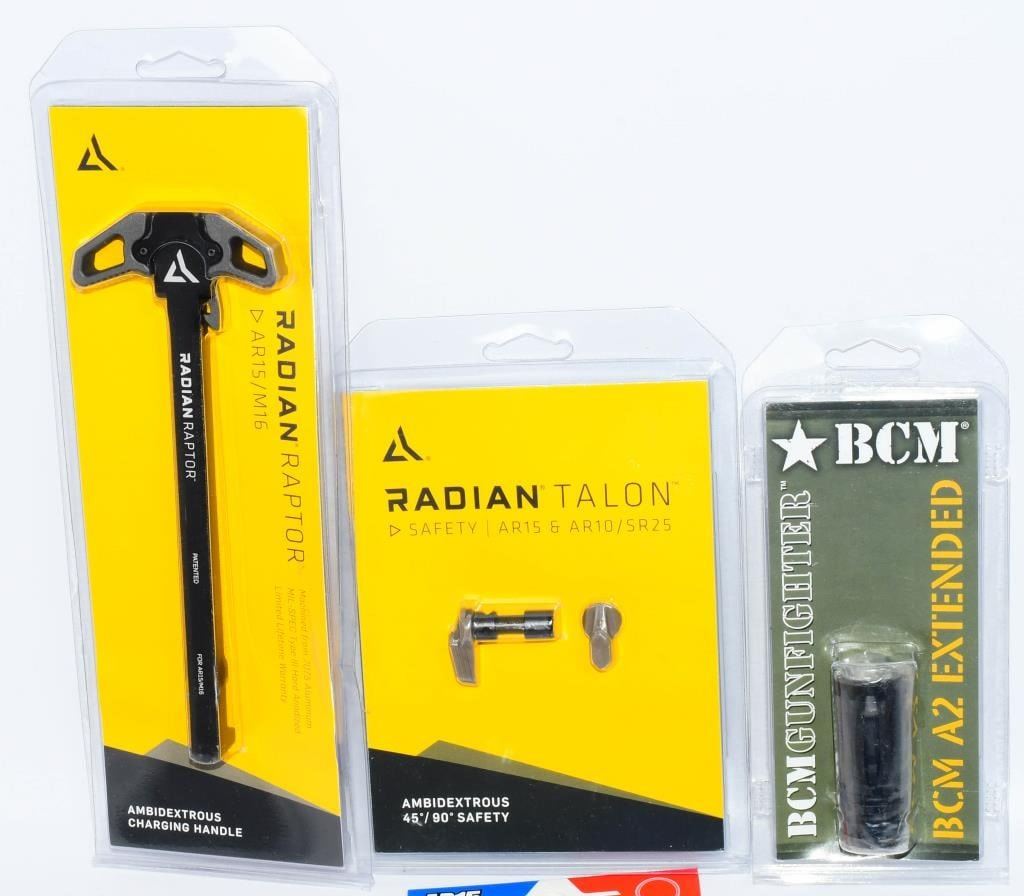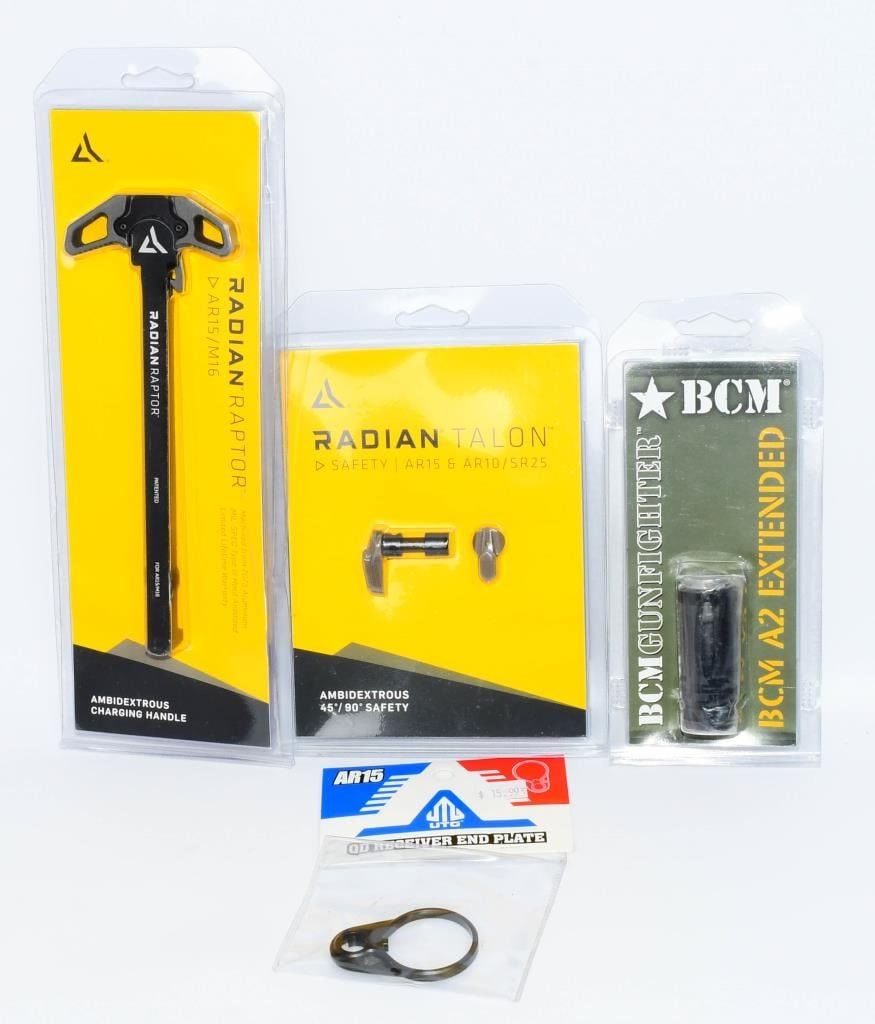 Greetings, firearm enthusiasts! Elevate your AR15 build with this exclusive bundle of new-in-the-package components. This kit includes high-quality parts to enhance both the form and function of your rifle. Radian Charging Handle: The package features a new Radian Charging Handle, renowned for its smooth operation and durable construction. Experience reliability with every cycling of your firearm. Radian Safety Switch: Enhance the safety and control of your AR15 with the included Radian Safety Switch. Engineered for precision, this safety selector ensures smooth and positive engagement. QD Receiver End Plate: Enjoy the convenience of quick-detach sling mounting with the included QD Receiver End Plate. This addition adds versatility to your rifle for various shooting scenarios. BCM AS Extended Muzzle Brake: The bundle is completed with a new BCM AS Extended Muzzle Brake. Benefit from reduced recoil and muzzle rise, allowing for faster follow-up shots and improved overall control. Bid confidently on this comprehensive AR15 Parts Bundle, meticulously selected to meet the demands of discerning firearm enthusiasts. Upgrade your rifle with these premium components. Place your bids now and take the first step towards a more enhanced shooting experience!