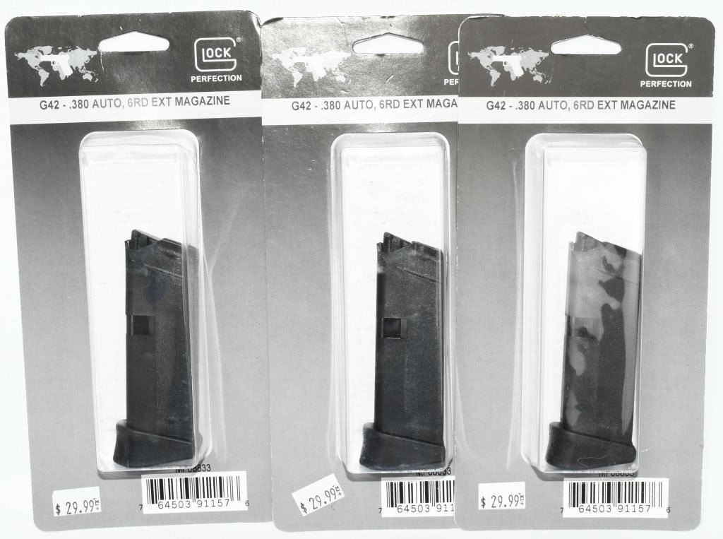 Lot 1793 3 NIP Glock G42 .380 Auto 6 Round Magazine