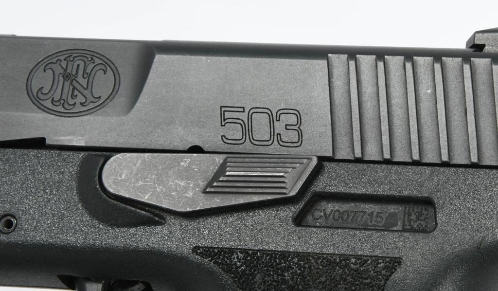 Meet the FN 503 Semi-Auto Pistol, a reliable and slim-profiled concealed-carry firearm designed for confidence and ease of use. This striker-fired pistol offers a crisp, consistent 5-lb. trigger pull, making it an ideal choice for both new and seasoned shooters. Here are the key features that make the FN 503 an excellent option for everyday carry: Slim Profile: The FN 503 boasts a slim profile, virtually eliminating printing for maximum concealment. This design ensures that the pistol remains discreet and comfortable to carry. All-Metal Trigger: The all-metal trigger provides a consistent 5-lb. pull, contributing to improved control and accuracy during use. Compact Grip: The compact grip features aggressive yet comfortable texturing, ensuring a solid, non-slip grip even for those with larger hands. Low-Profile Sights: The low-profile, snag-free 3-dot sights offer rapid target acquisition in various lighting conditions without hindering holstering or drawing. Loaded-Chamber Indicator: The loaded-chamber indicator enhances visual safety, allowing users to quickly determine the status of the firearm. Rear Slide Serrations: Rear slide serrations ensure a positive grip on the slide for quick, intuitive loading and clearing. Stainless Steel Barrel: The 3.1" stainless steel barrel, complemented by a recessed target crown, contributes to improved accuracy. Polished Chamber and Feed Ramp: The polished chamber and feed ramp facilitate flawless function, enhancing overall reliability. Lightweight: Weighing just 21 oz., the FN 503 is easy to carry and won't weigh you down. Extended Magazine: The pistol comes with an 8-round extended magazine, providing ample capacity for various scenarios. The FN 503 is designed to be an ideal everyday carry (EDC) or concealed-carry weapon, offering a balance of reliability, comfort, and performance. Whether you're a new shooter or an experienced one, the FN 503 is crafted to instill confidence in your carry choice.