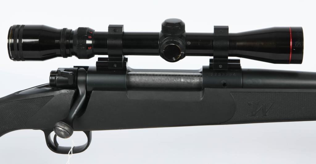 The Winchester Model 70 bolt-action rifle is a reliable and iconic firearm, and this particular variant is chambered in .30-06 Springfield, making it versatile for various shooting applications. The black-on-black design, featuring a synthetic stock, not only adds a modern aesthetic but also ensures durability and resistance to the elements. Equipped with a padded sling, this Winchester Model 70 offers enhanced comfort during transport and provides a convenient carrying solution. The inclusion of a Simmons 3-9X32 Scope further enhances the rifle's accuracy and versatility, making it suitable for a range of shooting scenarios. Whether used for hunting, target shooting, or other outdoor activities, the Winchester Model 70 in .30-06 Springfield, with its practical features and reliable design, stands as a testament to the enduring legacy of this classic bolt-action rifle.