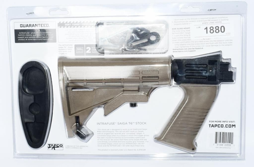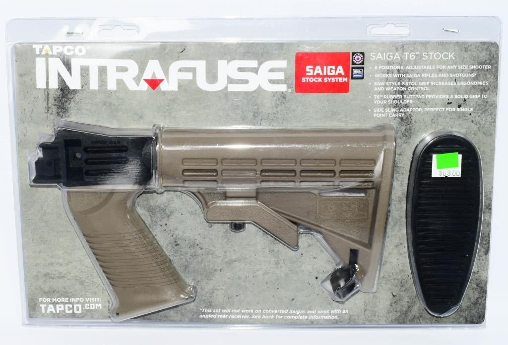 Rifles; Greetings, bidders! Here's your chance to enhance your Saiga rifle with the Tapco T-6 Adjustable Stock Set in Poly Dark Earth. This brand-new package is waiting for its rightful owner to place the winning bid. Intended to be a superb item for almost any person, we are positive you'll enjoy the Tapco Stock Set T-6 Adjustable Saiga Rifles Poly Dark Earth. Developed by using some of the very most strong and dependable resources in existence, these Shotgun Stocks via Tapco provides you with an item which will give a great deal of reliability. Tapco has been making high-quality merchandise for a very long time, and the Tapco Stock Set T-6 Adjustable Saiga Rifles Poly Dark Earth is their approach to showing you just how much they care.